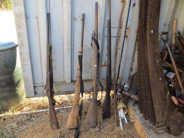 Detta är bara ett urval av de många hemmagjorda gevär som medarbetarna hos Western Safaris har konfiskerat.