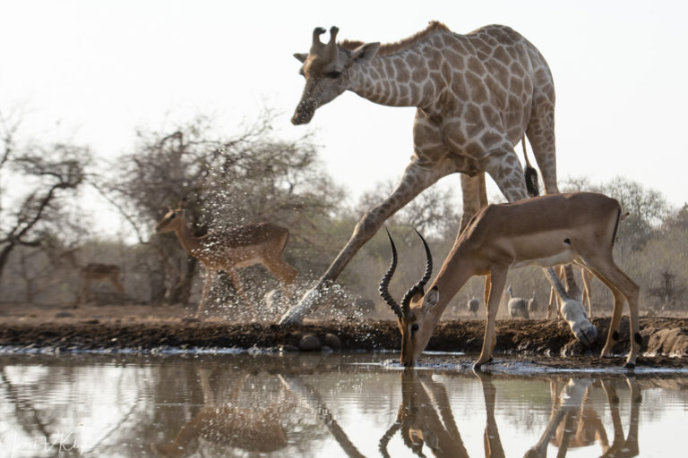 Därför är denna tid också fantastisk för en fotosafari i Mashatu Game Reserve. Redan från tidig morgon finns det nästan oavbruten aktivitet kring de sista vattenhålen. Här kan du uppleva och fotografera impalor, kuduer, elandantiloper, gnuer, zebror, vårtsvin och babianer som alla flitigt besöker vattenhålen. De kommer dit och börjar dricka utan att sondera terrängen för fara, vilket visar hur desperata de är efter vatten. Djuren är faktiskt så ovarsamma att man nyligen kunde observera en grupp impalor dricka från vattenhålet utan att märka att en lejon låg och slappnade av bara några meter bort i skuggan. Lyckligtvis för impalorna visar lejonen i reservatet inte mycket intresse för det törstiga bytet just nu eftersom det finns gott om försvagade byten i området med få gömställen. Detta lätta byte är också en fördel för geparderna i reservatet som för närvarande tar hand om flera små gepardungar. Ett lätt byte gör det mycket lättare för särskilt de ensamma geopardmammorna att uppfostra sina ungar.