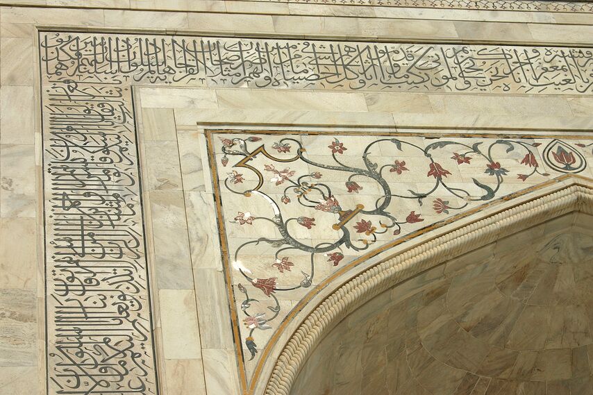 Så fort man kliver genom porten till området runt Taj Mahal möts man av den överväldigande synen av det snövita och otroligt vackra mausoleum. Man kan helt enkelt inte slita blicken från de vita kupolerna som utgör den ikoniska formen av Taj Mahal. Man kan betrakta denna underbara byggnad hela dagen lång och ändå upptäcka nya detaljer och små ornament som gömmer sig runt om på utsidan. Runt Taj Mahal har strategiska dammar anlagts för att skapa intressanta spegelbilder av mausoleet. Men det vackra yttre är inte allt - när man väl går in genom de bågformade gångarna i mausoleet kan man inte undgå att bli förundrad över de många olika elementen som rikligt pryder Taj Mahal. Det finns många kammare och de är alla lika imponerande. Under de tolv åren som det tog att bygga själva palatset och de tio åren det tog att bygga den omgivande landskapet var över 20 000 personer involverade i projektet och cirka 1 000 elefanter som släpade de tunga byggmaterialen.