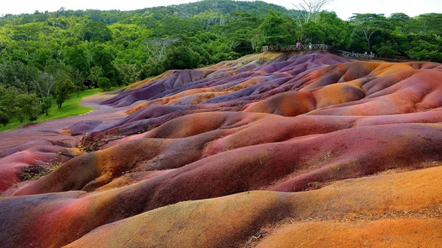 Om du vill uppleva naturen i sydvästra Mauritius är "Seven Coloured Earth" i Chamarel ett absolut måste. Den sju-färgade jorden är en imponerande geologisk formation skapad av vulkanisk sten som svalnat vid olika temperaturer. Jordkullarna bildar sluttningar som lyser i en magisk blandning av färger. Seven Coloured Earth är en av Mauritius största turistattraktioner och omfattar ett område på 7500 m2. Den sju-färgade jorden ligger i ett kompakt skogsområde vilket gör upplevelsen ännu mer spektakulär.