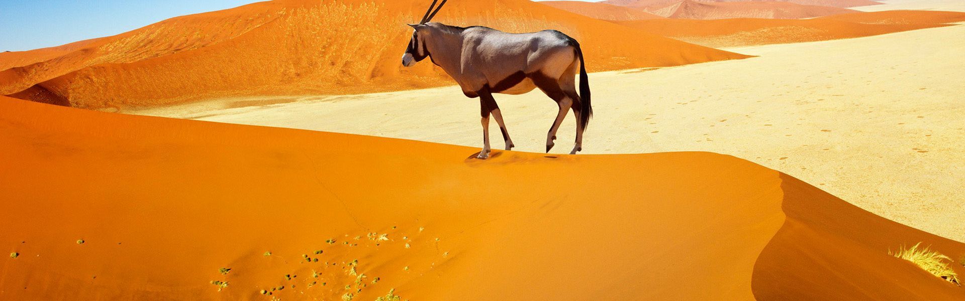 Namibia är landet med enastående ökenlandskap och mycket bra safarimöjligheter. Resan till detta land börjar ofta i huvudstaden Windhoek, som ligger centralt i landet och mitt emellan de största attraktionerna. Den östra och sydöstra delen av Namibia består främst av relativt platt och torrt land, varav en del tillhör Kalahariöknen som sträcker sig mestadels in i grannlandet Botswana. Mot sydväst hittar du Namiböknen, där majoriteten är skyddad i Namib-Naukluft National Park som innehåller några av världens högsta sanddyner. Här finns få, men väldigt speciella och vackra djur. Om du föredrar storvilt är det definitivt den norra delen av Namibia du bör besöka. Där ligger den stora Etosha National Park, där det finns ett enormt och varierad fågelliv samt fyra av de berömda "Big Five" - bara buffeln saknas i Etosha. Namibia är redo att förtrolla dig med sina unika orange-röda landskap i morgonsolen och sina spektakulära safariäventyr.
