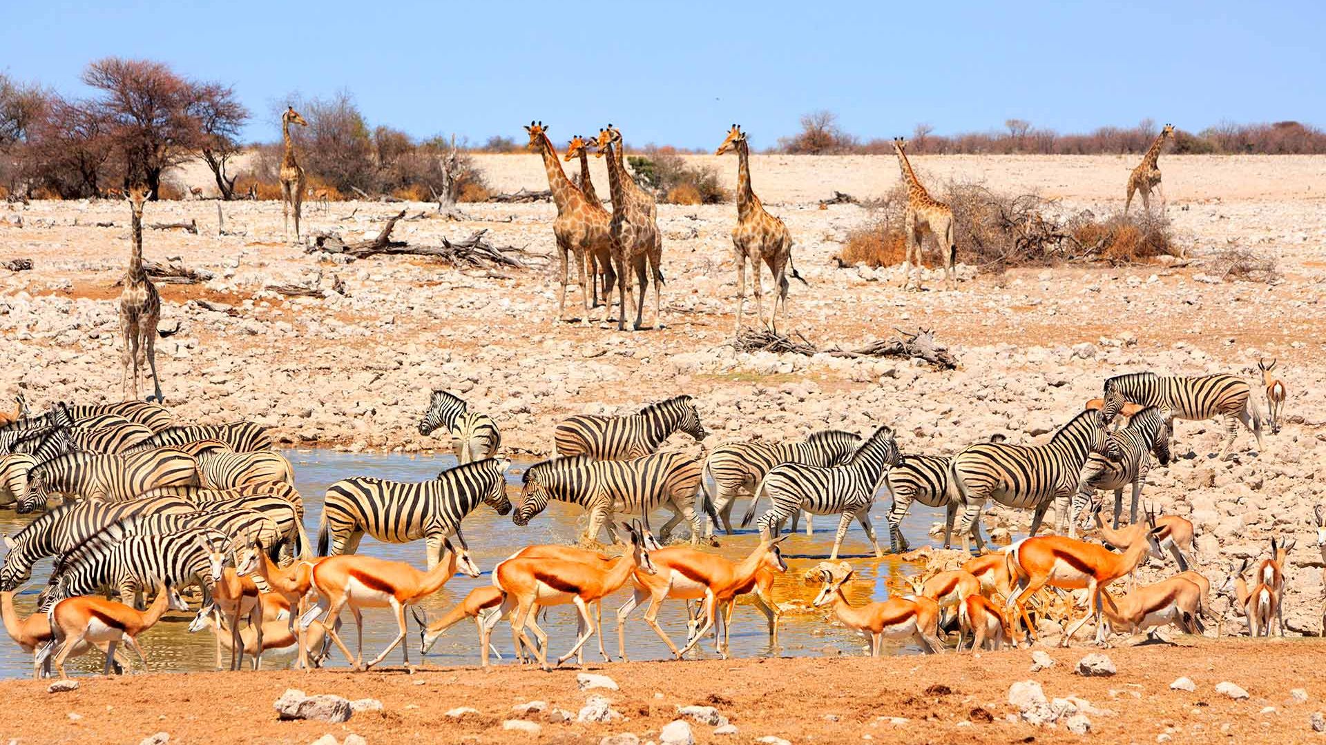 Men vilka djur kan du då se i Etosha? Landet är en utmärkt plats för att se leoparder, lejon och elefanter. Du hittar heller inte en mycket bättre plats att se svarta noshörningar på, som särskilt kan ses vid parkens många vattenhål. På den platta savannen runt saltslätterna kan du också hitta geparder, zebror, gnuer och flera arter av antiloper. Även fågellivet är ganska varierat. Namibia kan således i stor utsträckning mäta sig med de största safaridestinationerna och erbjuder dessutom oöverträffade omgivningar som du inte hittar på många andra platser.