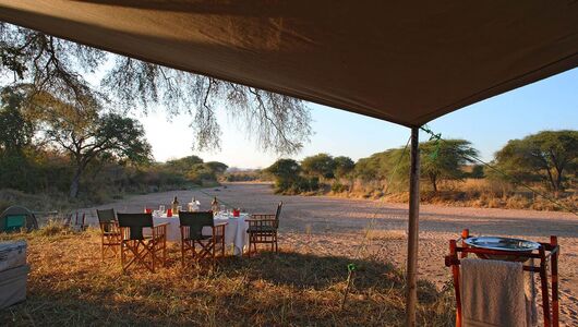 Vi följer Ruaha-floden och stannar för att njuta av solnedgången med en sundowner-drink innan vi återvänder till campen för middag och övernattning.