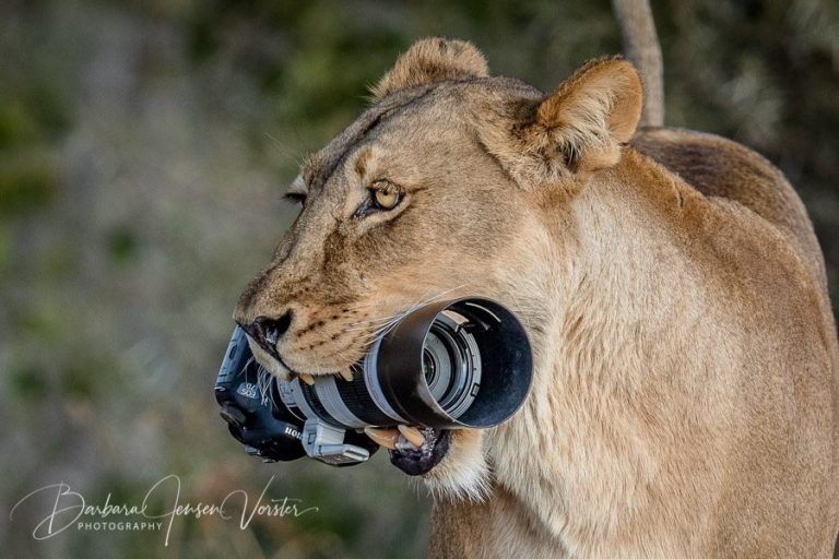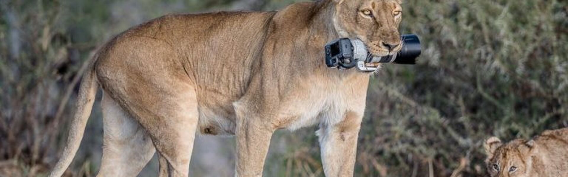 Lejon är bland de berömda "big five". De lever i flock och det visar sig att de också har stort intresse för exklusiv fotoutrustning. "Lejonungarna tar selfies". Så lät meddelandet en dag över radion till de andra guiderna under en game drive. Det måste vara varje fotograf's värsta mardröm att få sin kamera taget av ett djur under en safari, och i det här fallet hade safarigästen bara lagt ner sin kamera snabbt på marken. Men det tog inte lejonen lång tid att få tassarna på kameran och sen var det dags för lek och bus för den retsamma lejonfamiljen. Med beklagande måste guiden berätta för safarigästen att kameran tyvärr måste stanna hos lejonfamiljen för nuvarande.