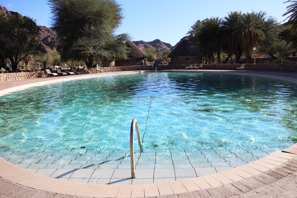 Ai Ais Resort i Fish River Canyon, Namibia, tilbyder kvalitetsindkvartering og er et fremragende sted at slappe af omkring termiske bade og opvarmet swimmingpool. Ai-Ais, som betyder "brændende vand" på et af de lokale sprog, henviser til de svovlholdige varme kilder, der findes i dette område.