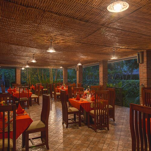 Alle døgnets måltider kan nydes i restauranten, til aften er der også mulighed for at få pizza fra hotellets pizzaovn.