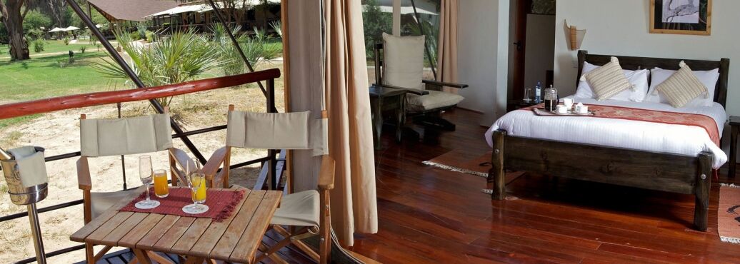 Campen har 30 lyxtält med utsikt över Ewaso Nyiro River. Den öppna sittmatsalen har plats för 100 gäster och ligger precis som boendets pool med utsikt över floden. Loungen med plats för 60 sittande gäster finns i huvudbyggnaden.