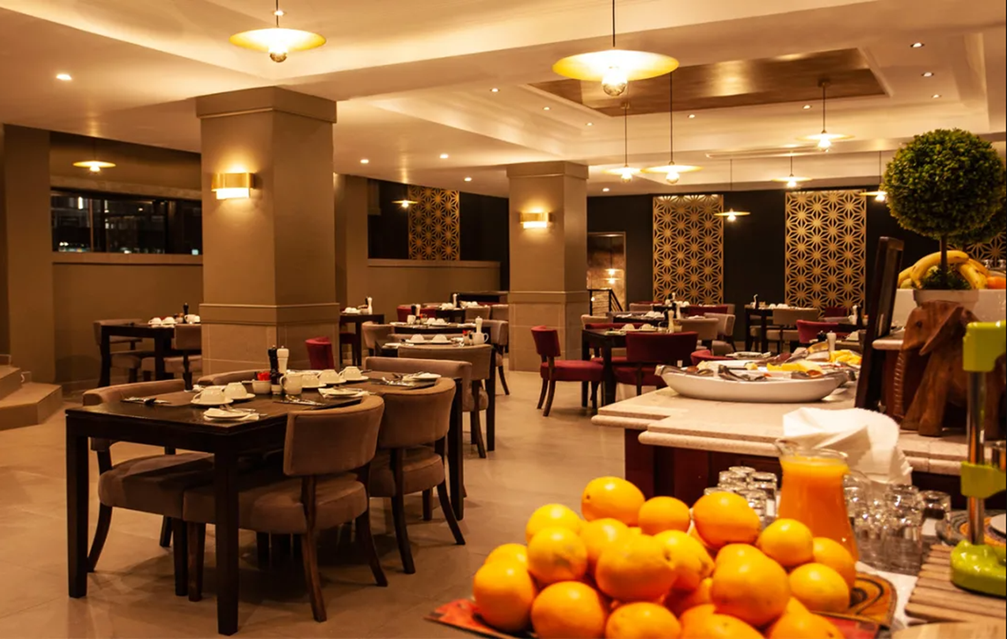 På hotellet er der både en lækker restaurant og bar, samt fitness rum og casino.