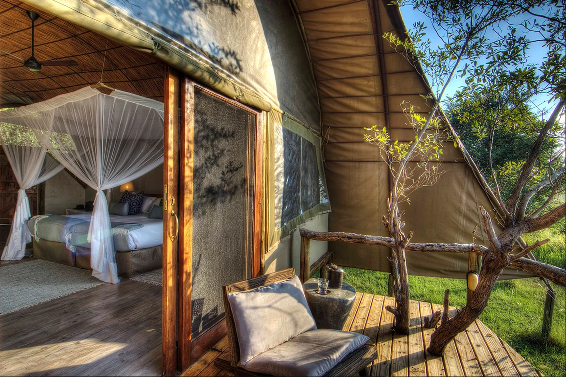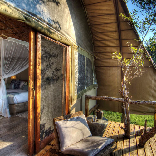 Campet består av tolv bekväma tält som alla har egna badrum och är privat belägna under stora akacieträd. Varje tält är utrustat med två enkelsängar, mjuka kuddar och täcken samt gott om förvaringsutrymme med hyllor och klädstänger för dina saker. Här får du den fulla naturupplevelsen och är på game drive så snart du kliver in i safaribilen.