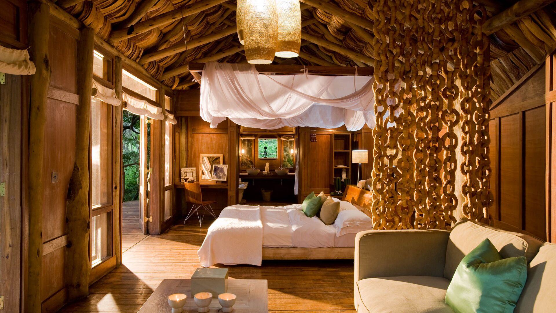 Den består af ti rummelige træhytter på cirka 45m2, der er bygget på stolper og integreret harmonisk i det omkringliggende landskab. Én af disse er en familiesuite på cirka 77m2.