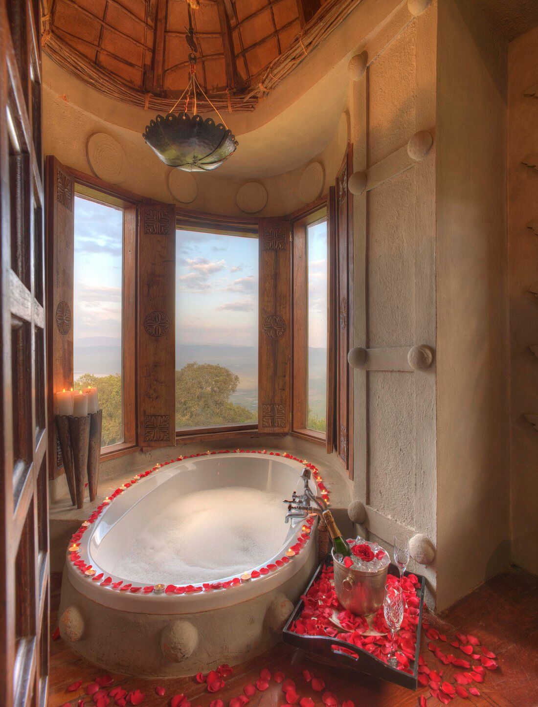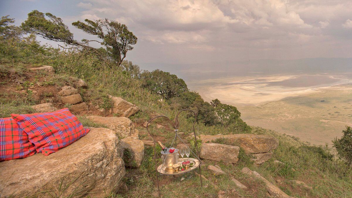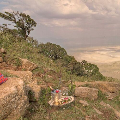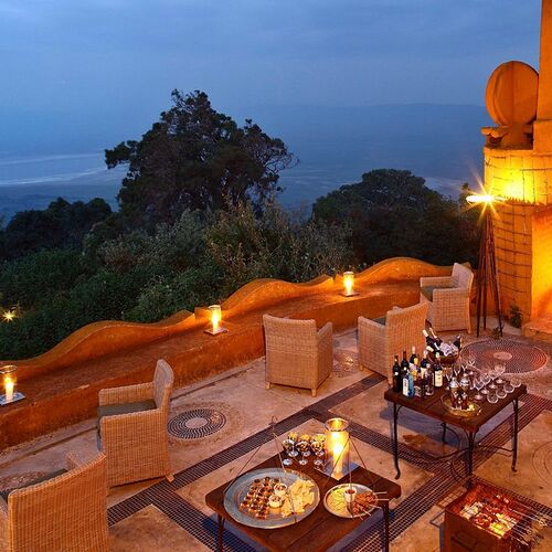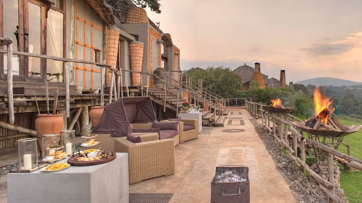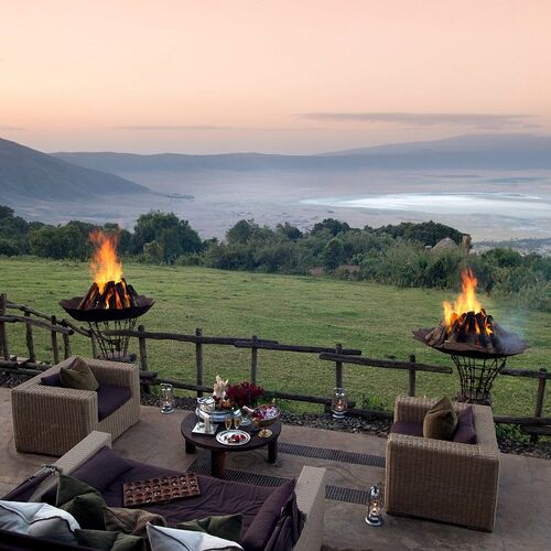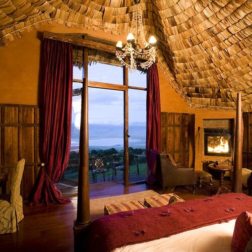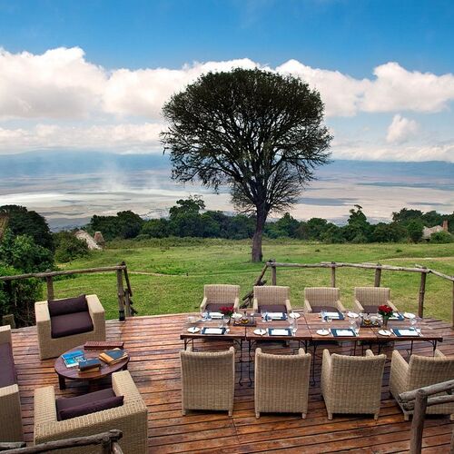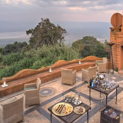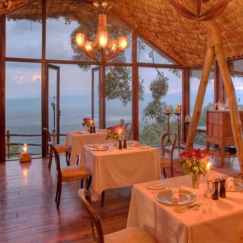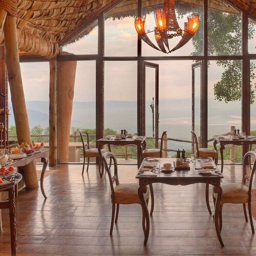 Gennem vinduerne i suiterne åbenbarer sig en betagende udsigt, et sandt mesterværk. Over den kølende dis stiger lodgen over Ngorongoro Craters kant og tilbyder udsigt, der ofte beskrives som mødet mellem Maasai og Versailles. Hver lejr har sine egne opholds- og spiseområder samt udsigtsdæk, der lader gæsterne suge de spektakulære panoramaer til sig.