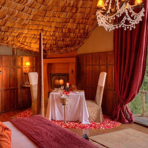 Suites er opført på pæle og udsmykket med antikviteter, overdådige lysekroner og raffinerede afrikanske skatte. Fra stille Maasai-sange ved solnedgang til opmærksomt personlig service og bekvemmeligheder som privat butlerservice, 24-timers elektricitet, og Wi-Fi på gæstesuiterne.