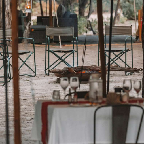 Samling og hygge foregår ofte omkring bålstedet ovenpå en god safaridag. Ved bålet, kan man sidde og nyde et glas vin alt imens middagen tilberedes og serveres.