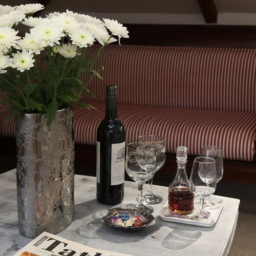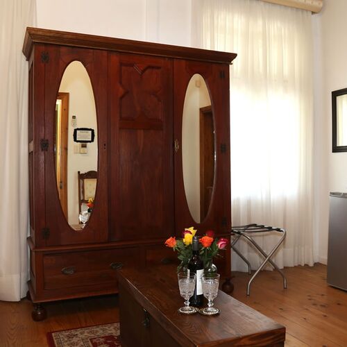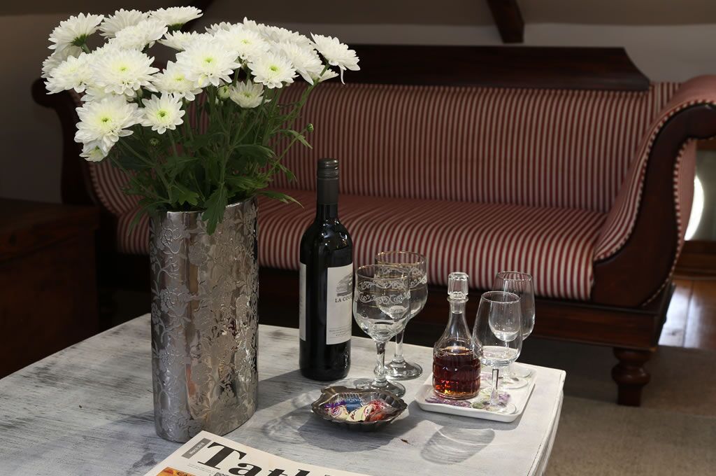Der er ligeledes en hyggelige stue med åben pejs, hvor man kan sidde og slappe af efter en spændende dag i vinlandet.