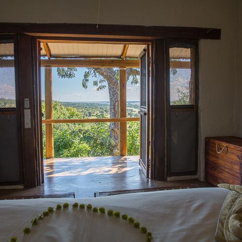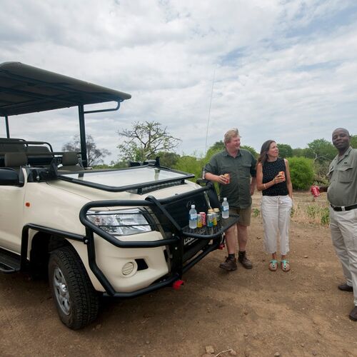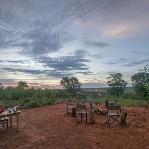 Dessutom erbjuder campen en matsal, loungeområde, bar, boma (traditionell afrikansk eldstad) och en pool, där en utsiktsterrass ger möjlighet att titta direkt ner på ett flitigt besökt vattenhål.