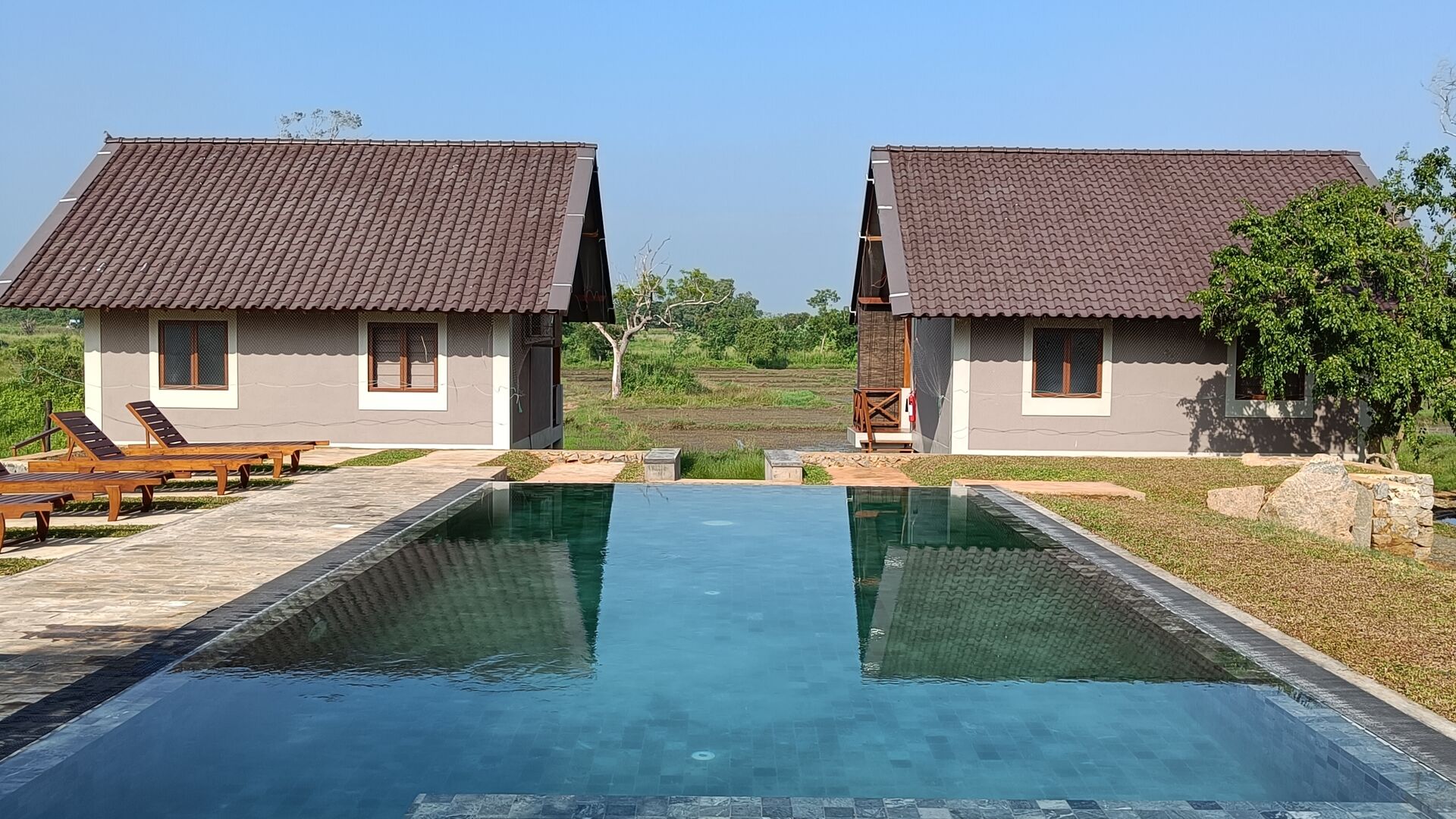 Ved lodgen forefindes swimmingpool, så man har mulighed for at få safaristøvet vasket af. Logden er omgivet af smukke rismarker og små søer.