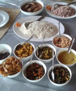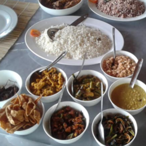 Der er et fælles spise-opholdsområde, hvor værten tilbyder flere menuer. Her serveres morgenmad, frokost, aftensmad og der tilbydes srilankansk eller vestlig menu som det ønskes. Vi opfordrer til at prøve det Srilankanske køkken, husk dog at bede om ”less spicy” hvis du ikke ønsker det alt for stærkt.