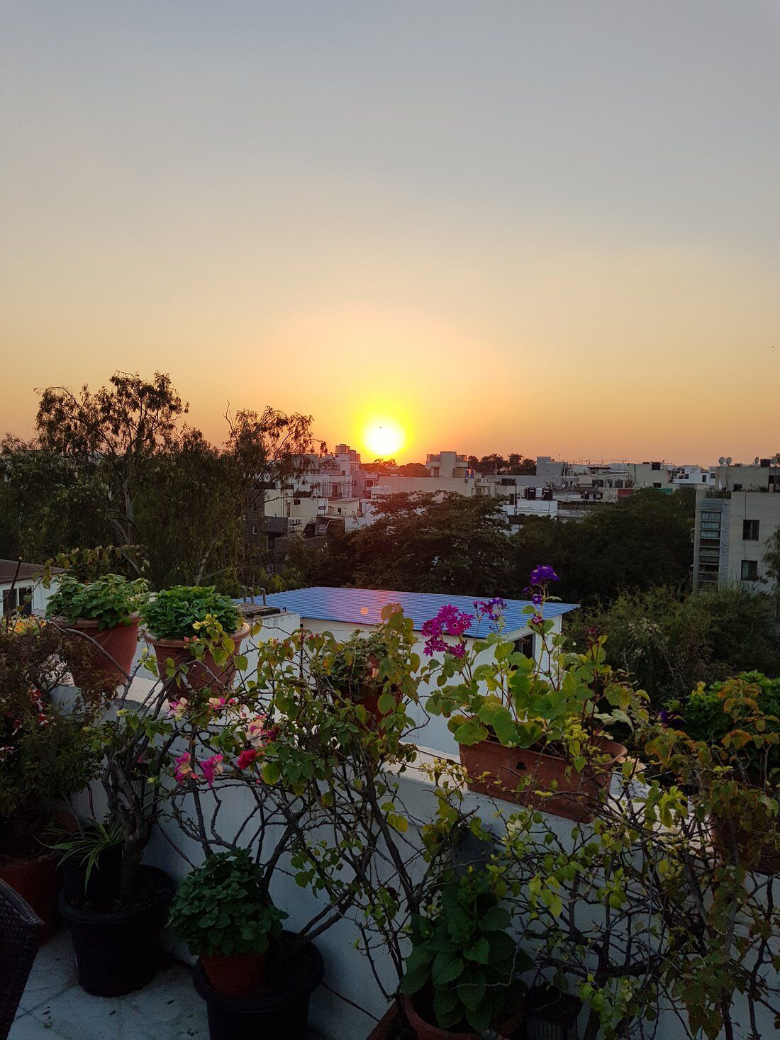Morgenmaden og eftermiddagskaffen kan nydes med udsigt over byen på tagteressen i hyggeligt selskab.