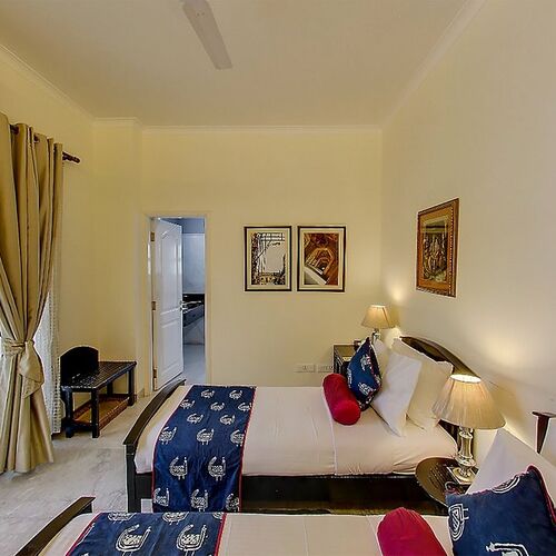 Stillen i værelserne variere så aller er en smule anderledes et har indiske militærtryk, et andet fotografier.