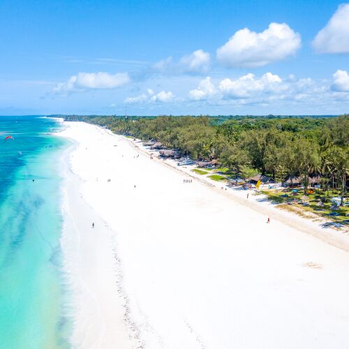 Diani Beach er kendt for sin 25 kilometer lange hvide sandstrand, der strækker sig ud i det varme Indiske Ocean. Området er populært for sine smukke strande og nærhed til nogle af Kenyas bedste nationalparker. Det store koralrev fungerer som en naturlig barriere mod bølger, hvilket gør vandet roligt og ideelt for dykkere og snorklere, der ønsker at udforske de farverige koraller og fisk.
