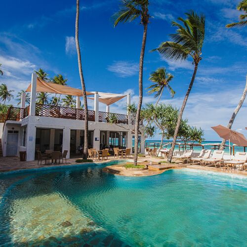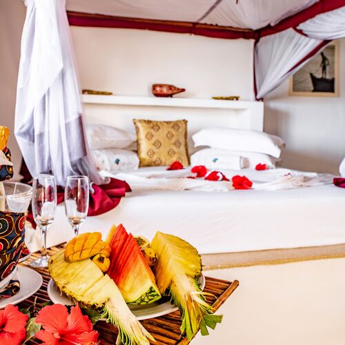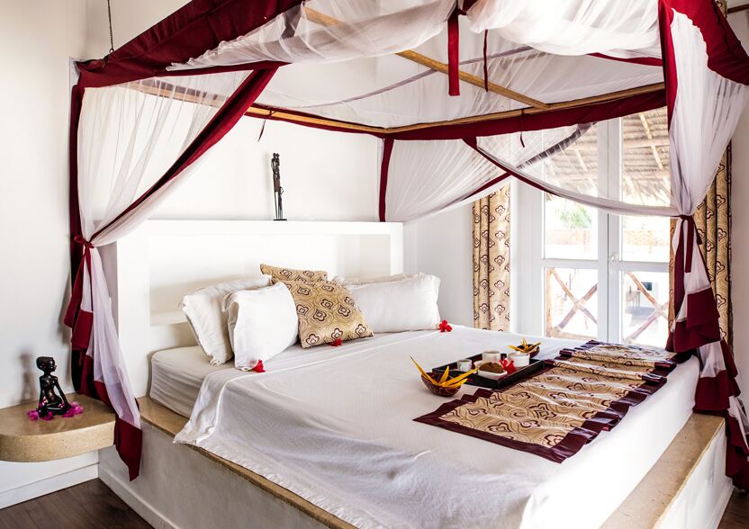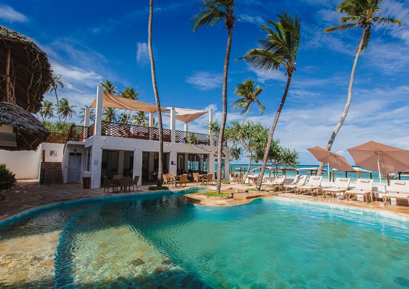 Boutiquehotellet er omgivet af hvidt sand, høje kokosnødtræer og beliggende ud til det dejligt varme Indiske Ocean med udsigt til Mnemba Island.