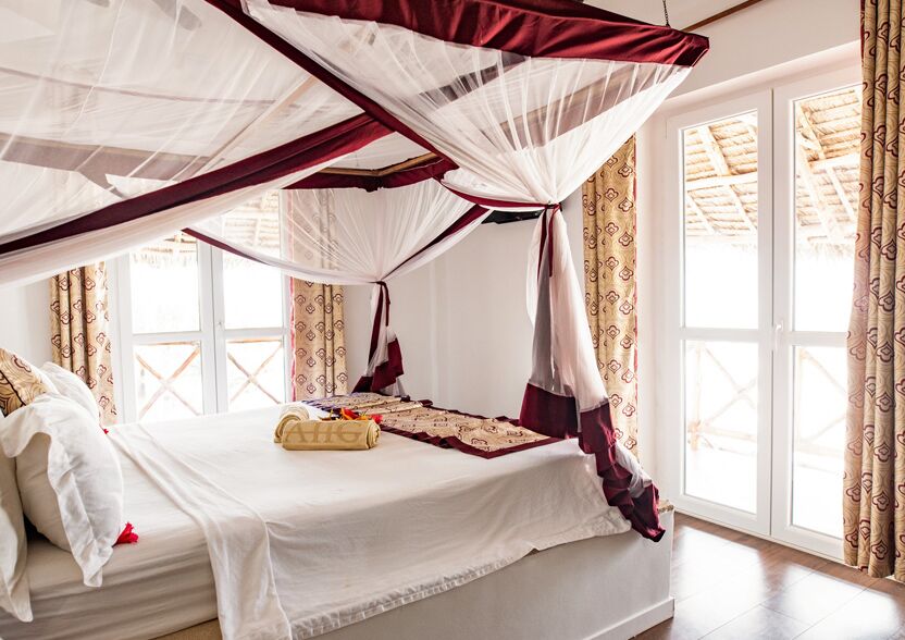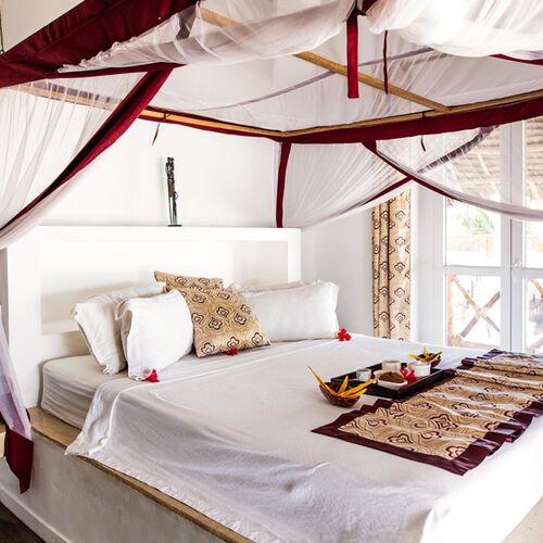 Det fire-stjernede Dreams Bay Boutique hotel ligger på Zanzibars nordøstkyst ved Matemwe strand. Boutiquehotellet har 24 rummelige og komfortable værelser i en kombineret moderne og afrikansk stil. Alle værelser har queen size seng, aircondition, myggenet, kaffe- og tefaciliteter, føntørre, safety box, minibar, køleskab og TV.