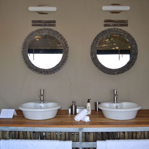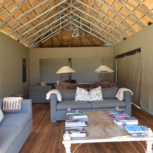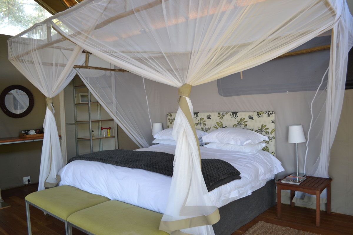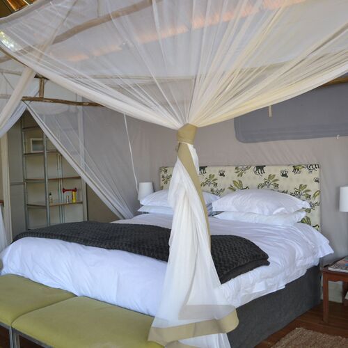 Elephant’s Eye består av åtta mycket stora och rymliga tältstugor, byggda på pålar, alla med utsikt över vattenhålet. Alla tältstugor är ljust och modernt inredda med dubbelsäng eller två enkelsängar omgivna av myggnät, välutrustat badrum, utomhusdusch, liten kamin som används under den kalla årstiden, te- och kaffefaciliteter samt terrass/balkong där man kan sitta och njuta av naturen och djurlivet.