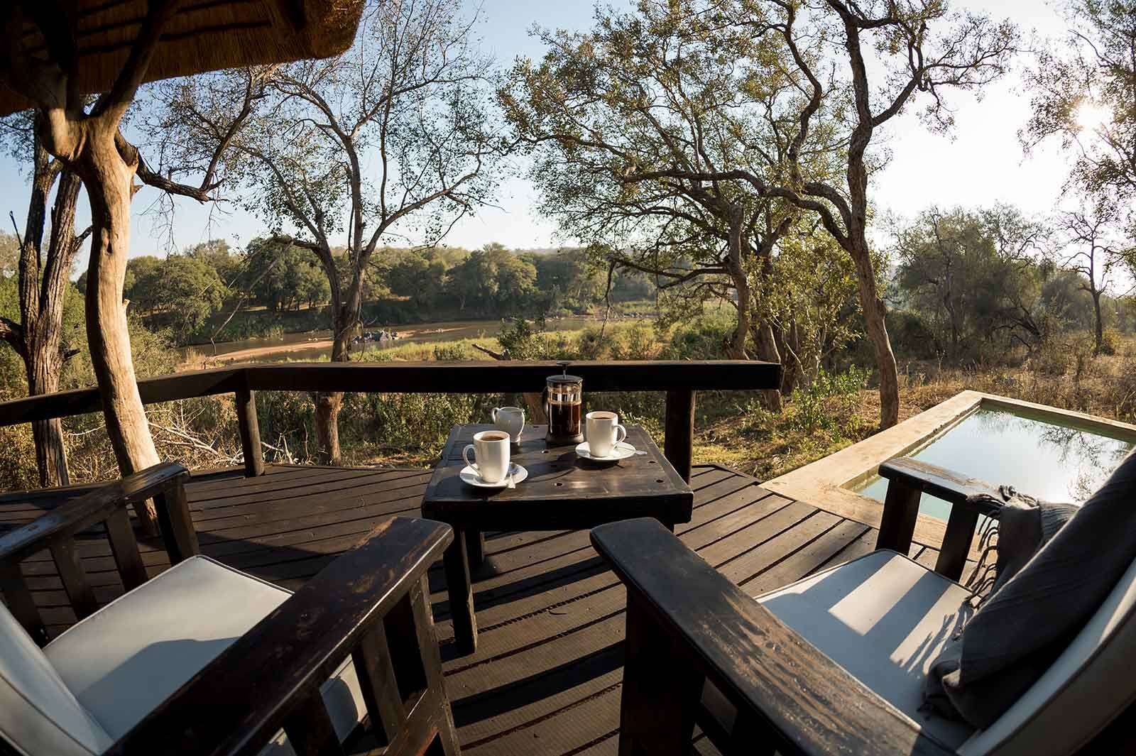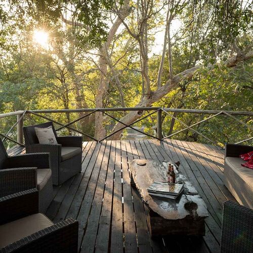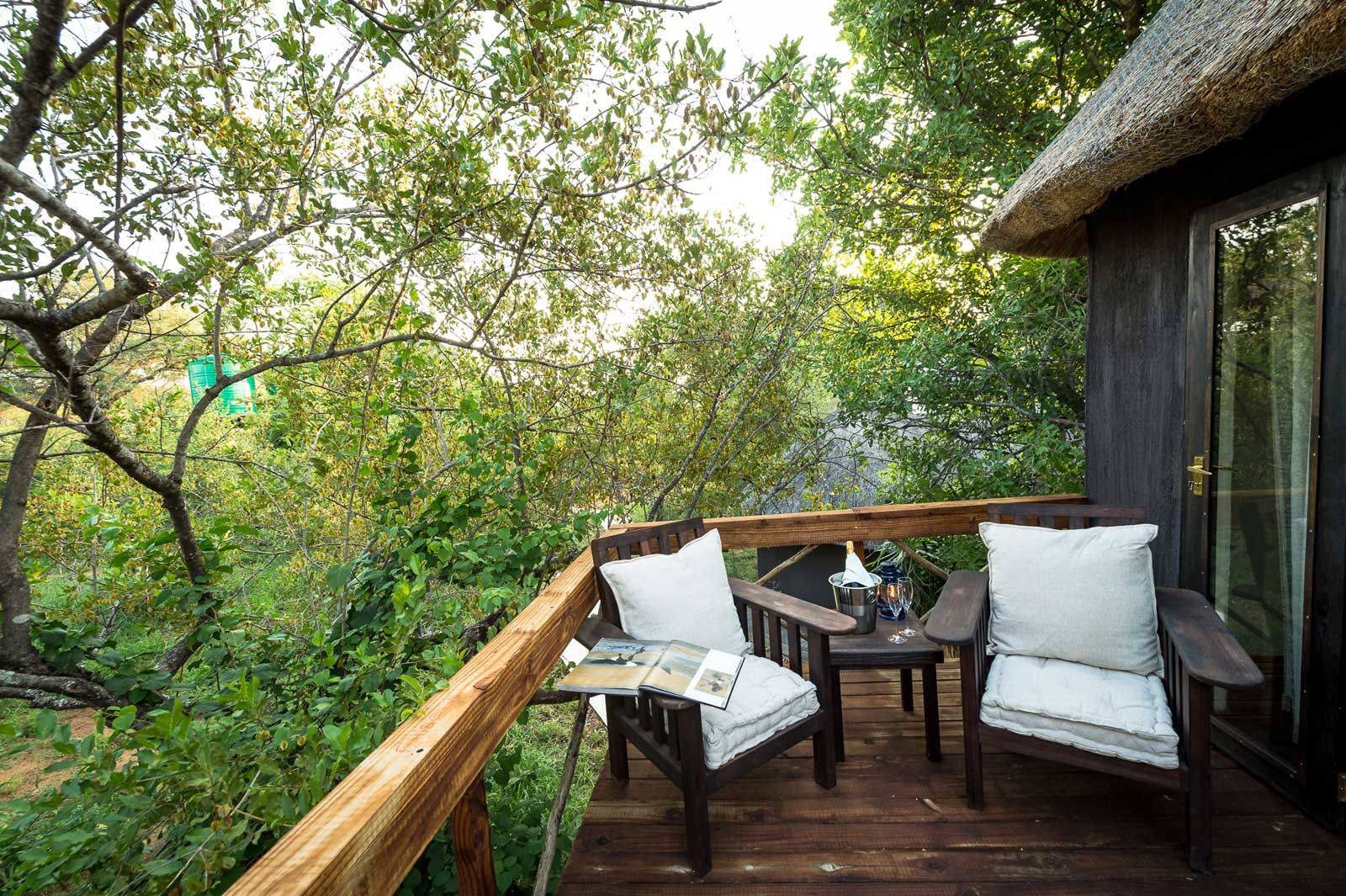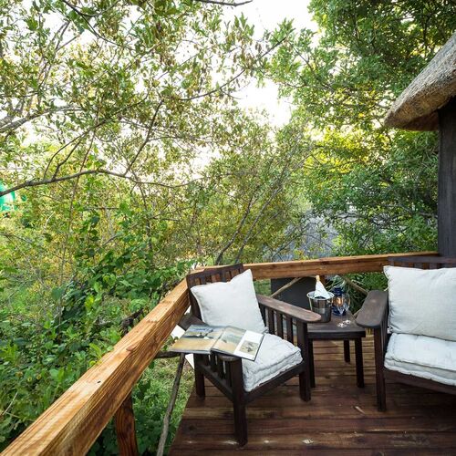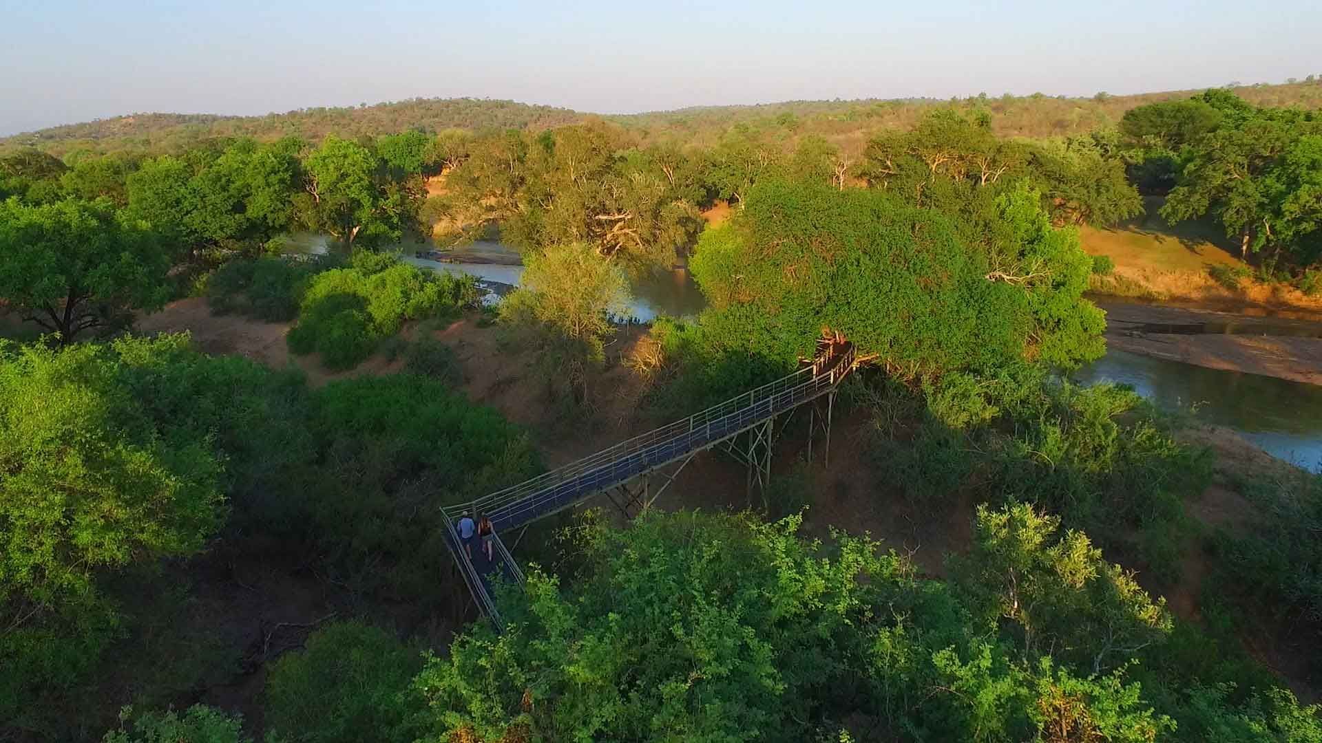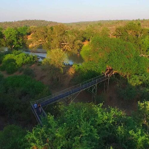 En trægangbro fører ned til en udsigtsplatform bygget omkring et træ og omsluttet af løvfyldte trægrene, som alle har udsigt over flodlejet og Olifants-floden. Et udsigtstårn ved River Lodge tilbyder en fantastisk udsigt over reservatet og et vandhul.