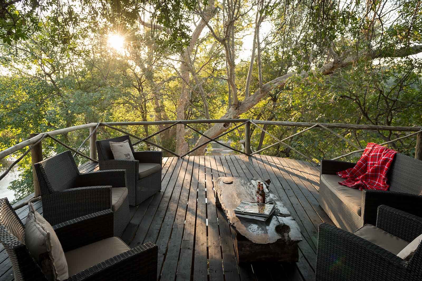 River Lodge er centreret omkring et fremragende udendørs gæsteområde, komplet med en pool, skyggefuld bar, udendørs opholdsstue og et indendørs spiseområde. Her serveres lækre hjemmelavede måltider under stjernerne i det glødende lys af lanterner og en dansende pejs.