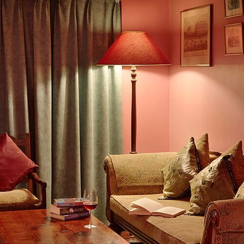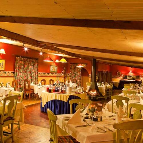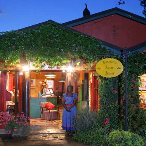 Terrassen har utsikt över trädgårdarna och dalen och atmosfären av lantlig charm finns överallt på hotellet - i loungen, restaurangen och baren. Inredningen är mysig med äldre konstverk och en öppen spis för svala kvällar. Foresters Arms är också känt för att ha god mat och en trevlig atmosfär. Det finns både ett mysigt bibliotek, en lounge och en bar.