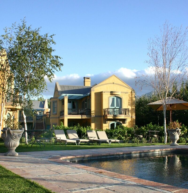 Beliggenheden i udkanten af landsbyen, omgivet af fortryllende vingårde og majestætiske bjerge - kun 1 times kørsel fra Cape Town - er helt unik. Byen Franschhoek blev skabt i 1688 af de franske huguenotter og er blevet verdensberømt for sin store gæstfrihed, fortrinlige kogekunst, fremragende kunst og håndværk.
