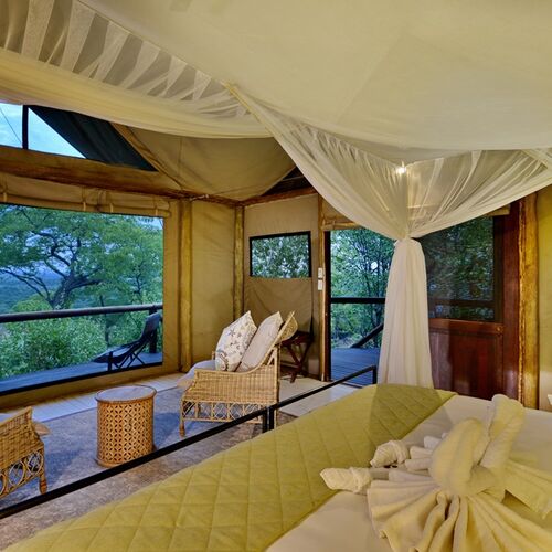 Ghoha Hills Savuti Lodge ligger højt på Ghoha Hills og har en fantastisk udsigt over den vidtstrakte Savute i Chobe Nationalpark. Lodgen ligger 20 km fra Savute-kanalen (ca. 45 minutters kørsel fra landingsbanen), og med sin hævede position tilbyder den betagende udsigter, som er unikke i Botswana. Lodgen er designet til at udnytte de imponerende udsigter, uanset om man spiser i gæsteområderne, tager en svømmetur eller sidder på balkonen i chaleterne.