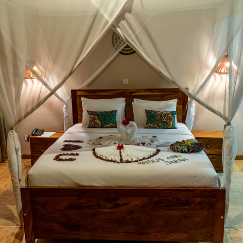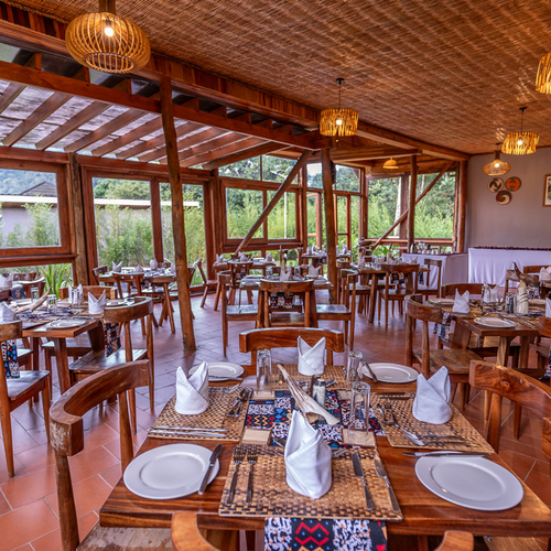 På dette fantastiske lodge, bor du tæt på Bwindi Nationalpark og er omgivet af frodig og smukke træer og bjerge. Lodgen ligger fredligt og idyllisk og ligeledes har indretningen det indtryk også. Det er æstestisk, smukt og det kan føles som at lande på et retreat, hvor alt emmer af skønhed, ro og natur. Lodgen er økovenlig og fokuserer på bæredygtighed. Der er lyse og høje rum med vinduer fra gulv til loft, så naturen næsten bliver trukket med indenfor fra alle retninger. Farver og tekstiler er der tænkt på, så det giver en rolig og stemningsfuld oplevelse. Alle med et afrikansk udtryk.