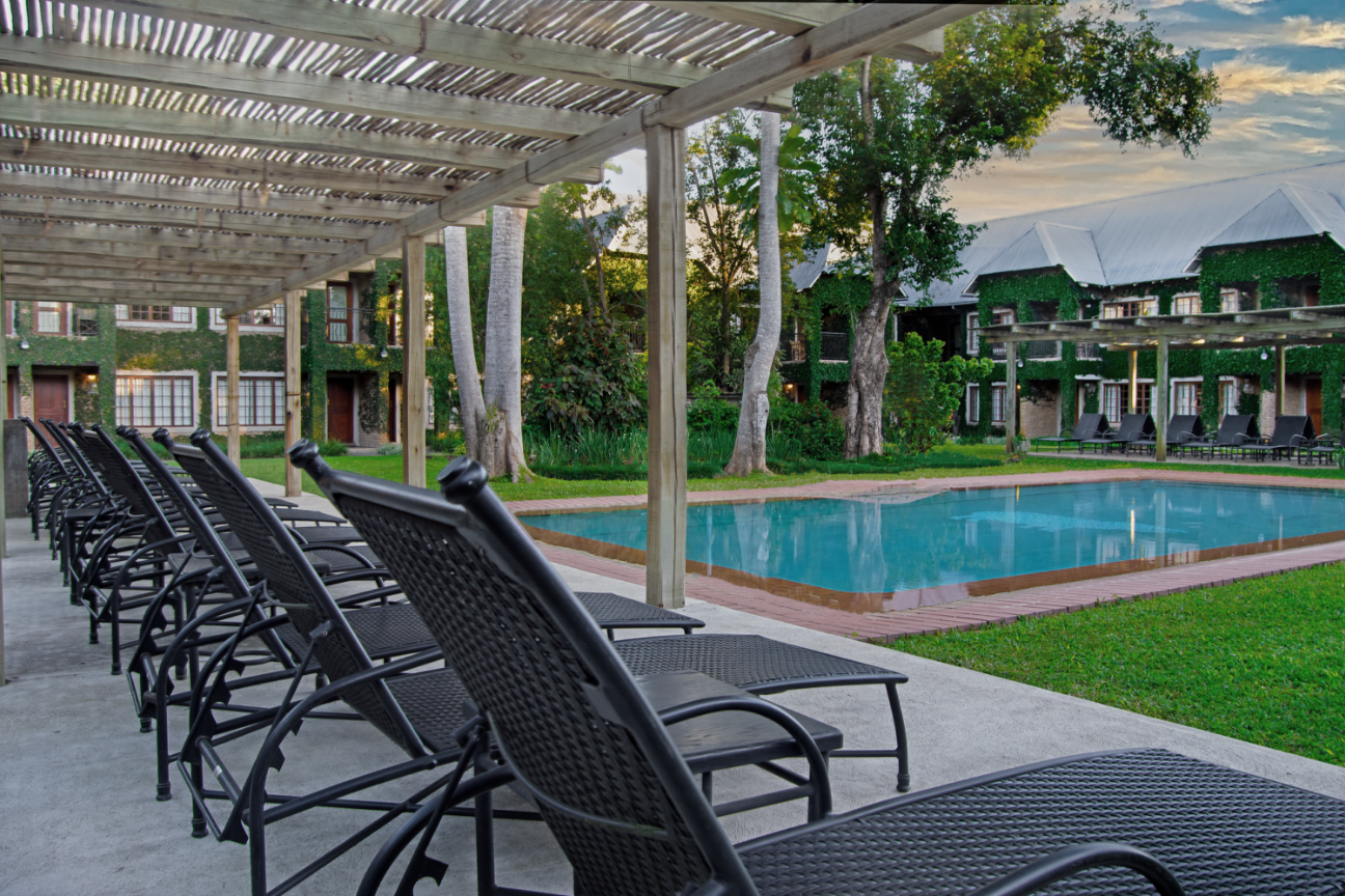 Lodgen har en dejlig pool og flotte udendørsomgivelser, hvor blandt andet bygningerne er smukt dekoreret af naturligt egeføg, der dækkerne murerne på bygningerne. Et meget smukt syn fra poolen og haven især.