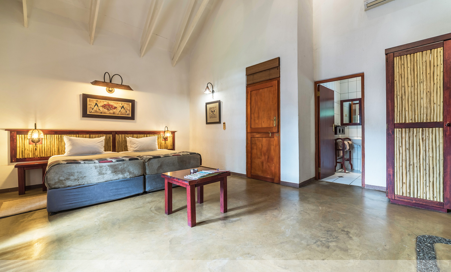 Lodgen har 91 flotte og moderne værelser. Mange af værelserne har udsigt til floden. Her møder man af og til dyr som flodheste, krokodiller, elefanter og aber samt mange forskellige fuglearter.