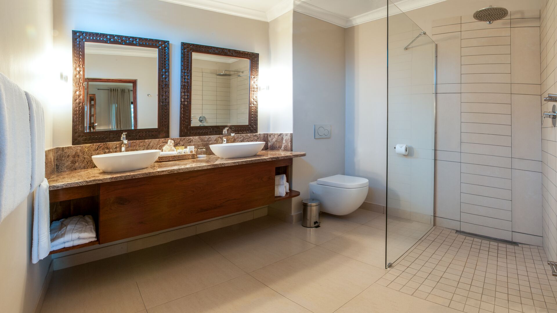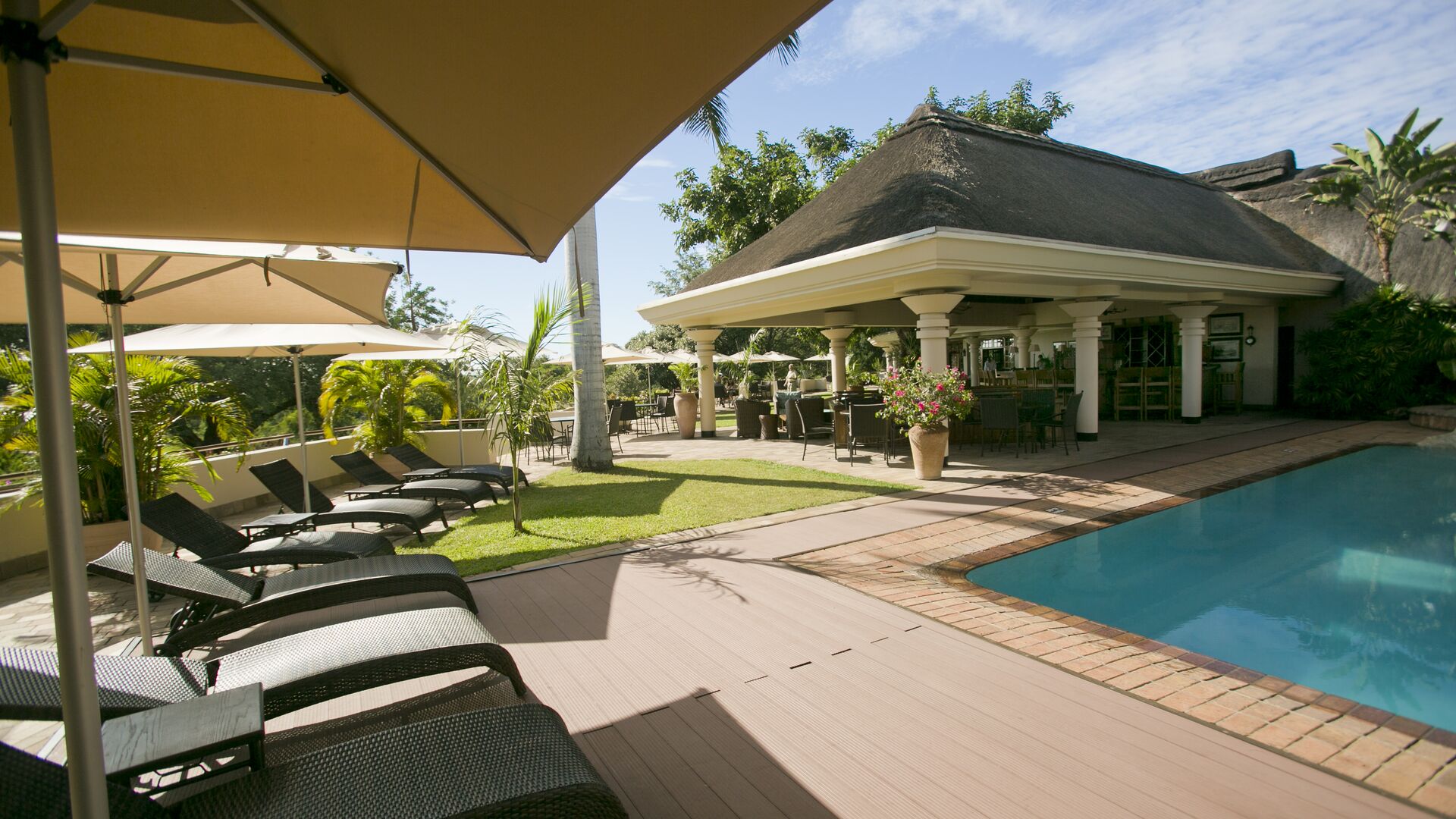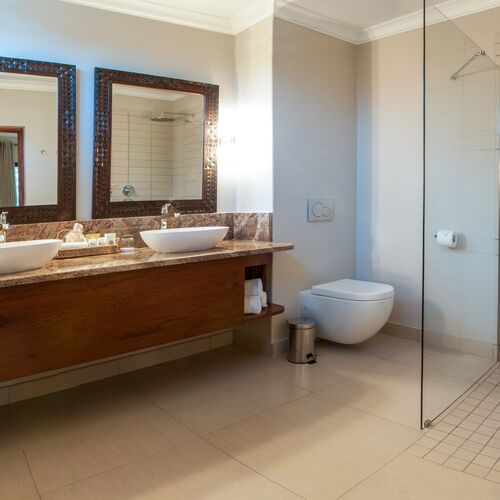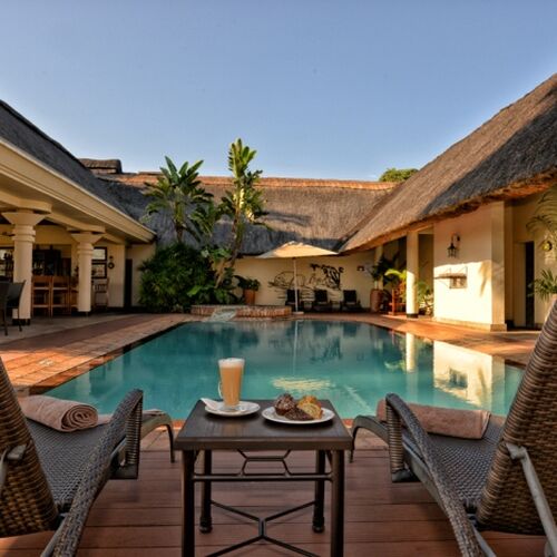Det lilla boendet har 34 rymliga rum i olika utformningar med badrum som har både badkar och separat dusch fördelade på byggnadens två våningar. På övervåningen har rummen tillgång till en balkong med utsikt över de fantastiska omgivningarna, medan rummen på nedervåningen har dubbla franska dörrar ut mot hotellets trädgård där man kan uppleva vilda betande gäster på nära håll. Alla rum har enkel tillgång till hotellets à la carte-restaurang, pool och poolbar samt aktivitetscenter för Victoria Falls-upplevelser.