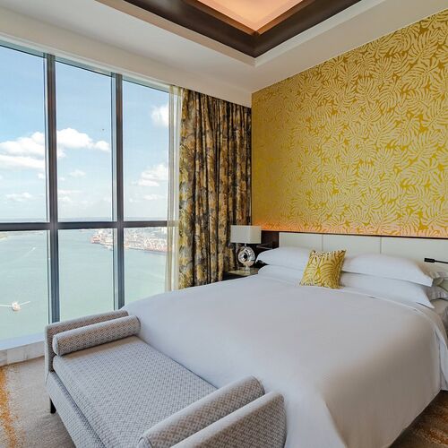 En rymlig svit på 65 kvm med lounge, valbar stad- eller havsutsikt, separat vardagsrum och kök samt king-size säng.