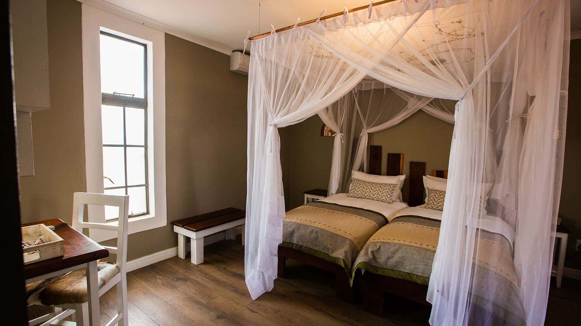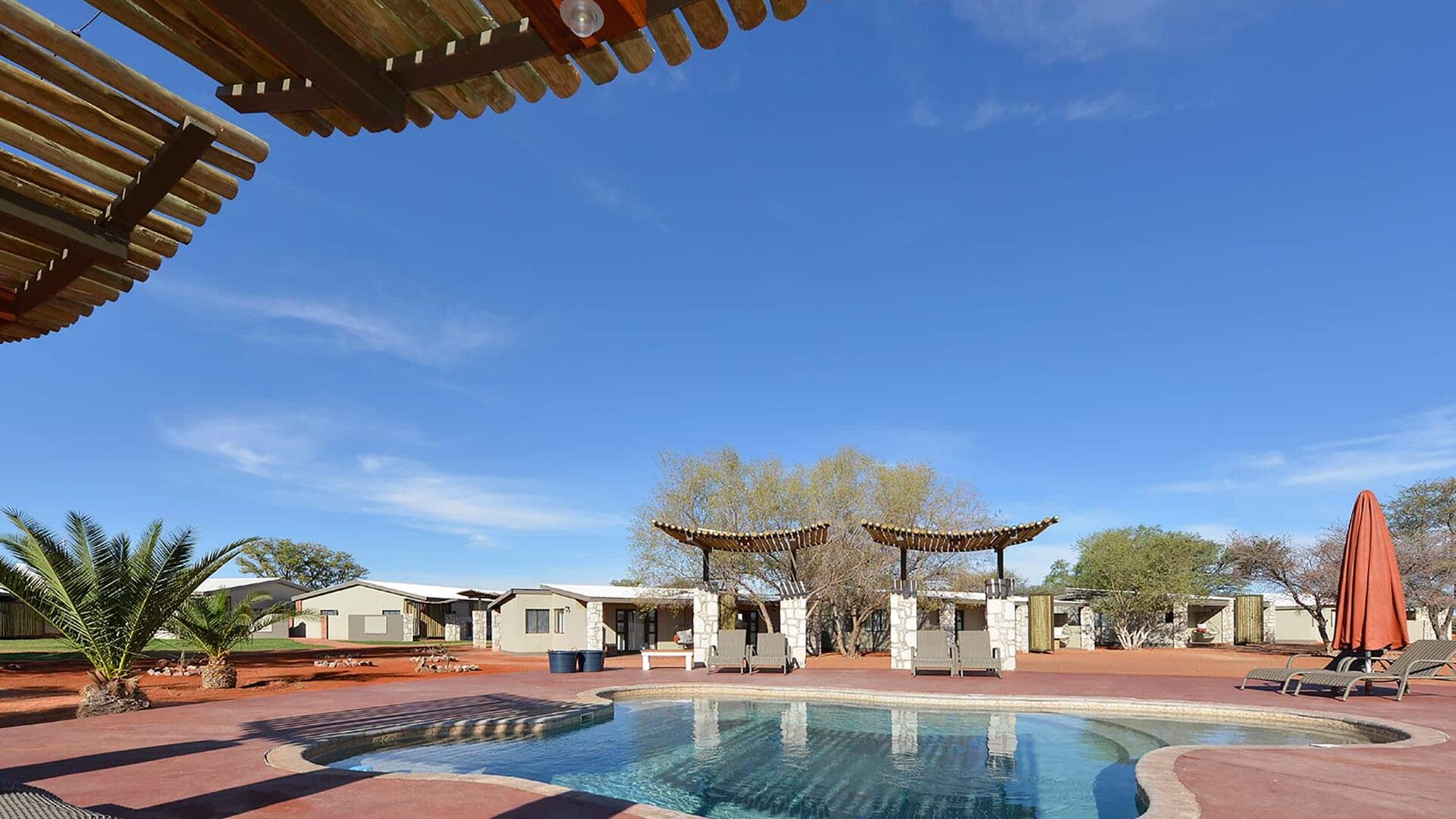 Gæsterne kan vælge mellem forskellige værelsestyper, herunder standard tvillingeværelser beliggende i gårdhaven med udsigt over swimmingpoolområdet, standard familieværelser med åbent rum og 2 enkeltsenge samt 2 køjesenge, standard tredobbeltværelser med udsigt over Kalahari-savannen, komfort tvillingeværelser med åben planløsning og udsigt over savannen samt komfort familieværelser med to separate soveværelser.