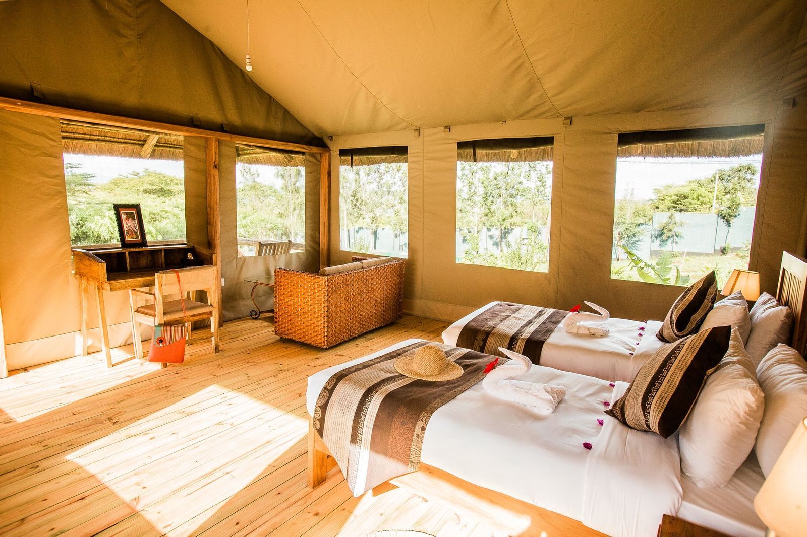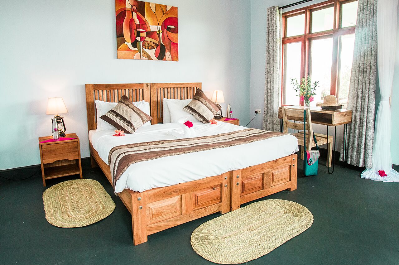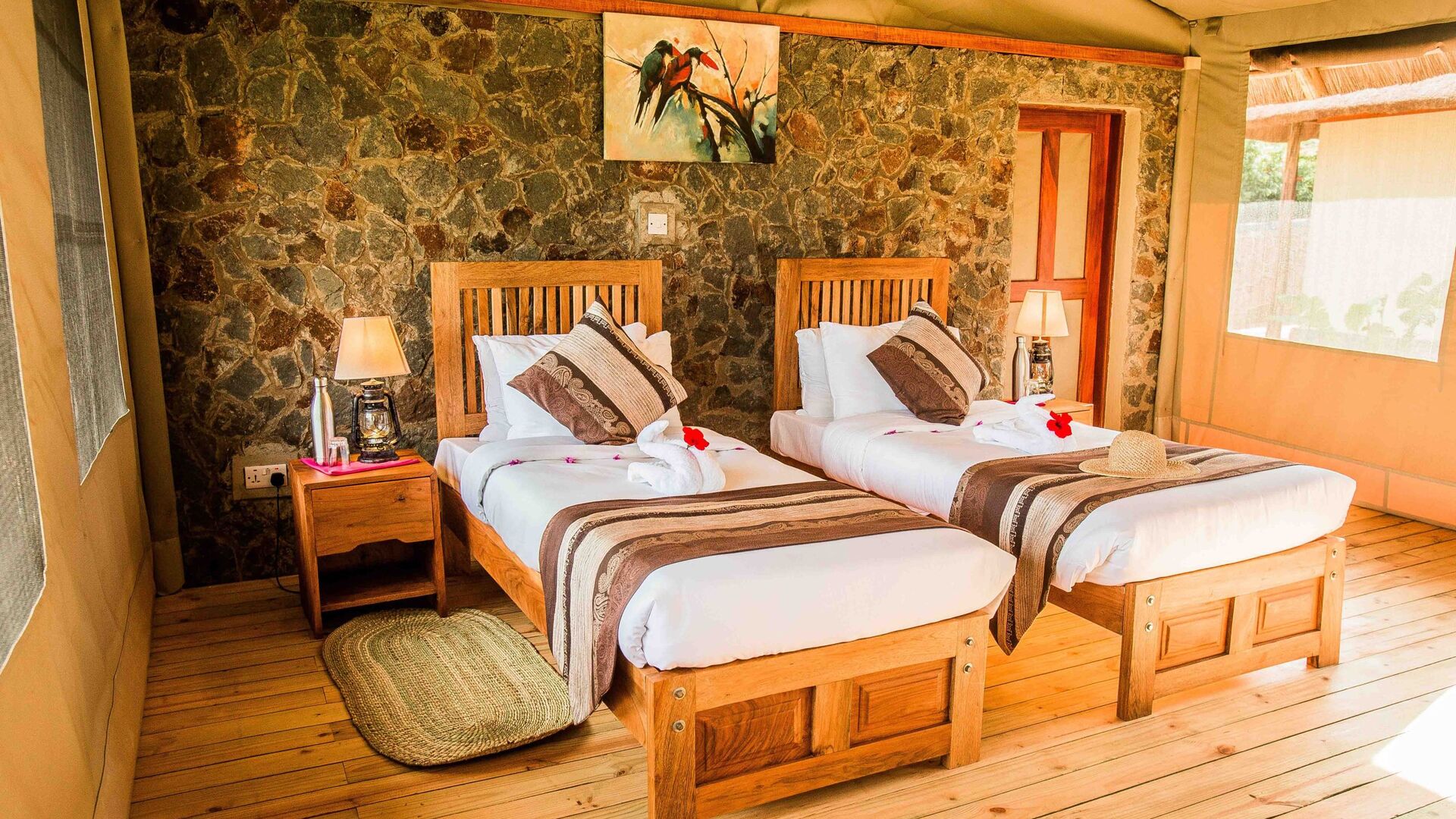 Lodgen erbjuder åtta standardrum fördelade på fyra dubbelstugor och fyra lyxtält. Varje rum och tält har eget badrum och är utrustade med två enkelsängar eller en queensize-säng, en privat veranda, ett skrivbord, en öppen spis och klädförvaring.