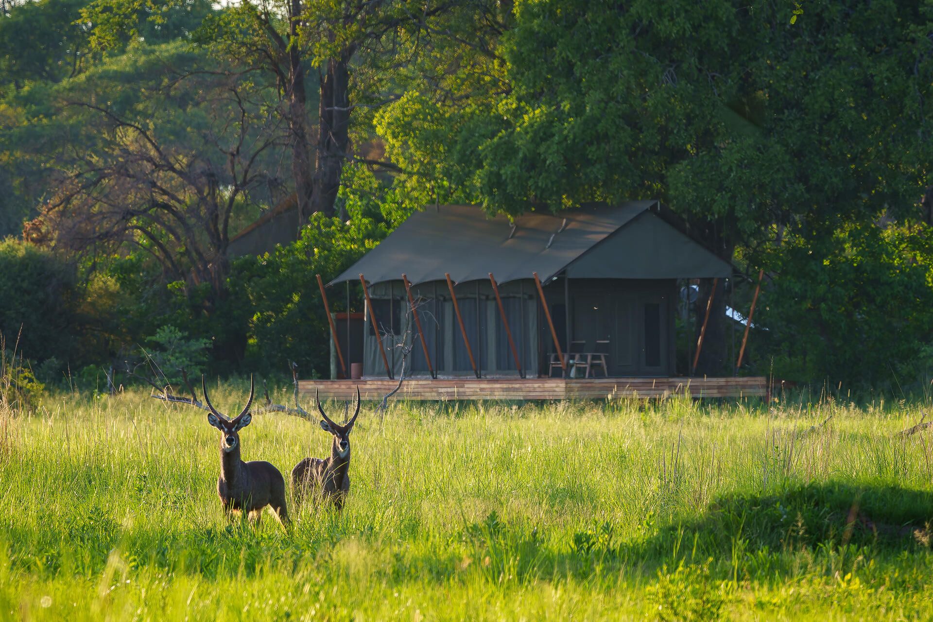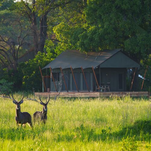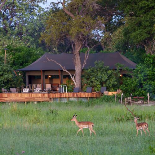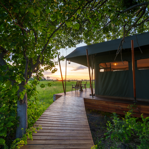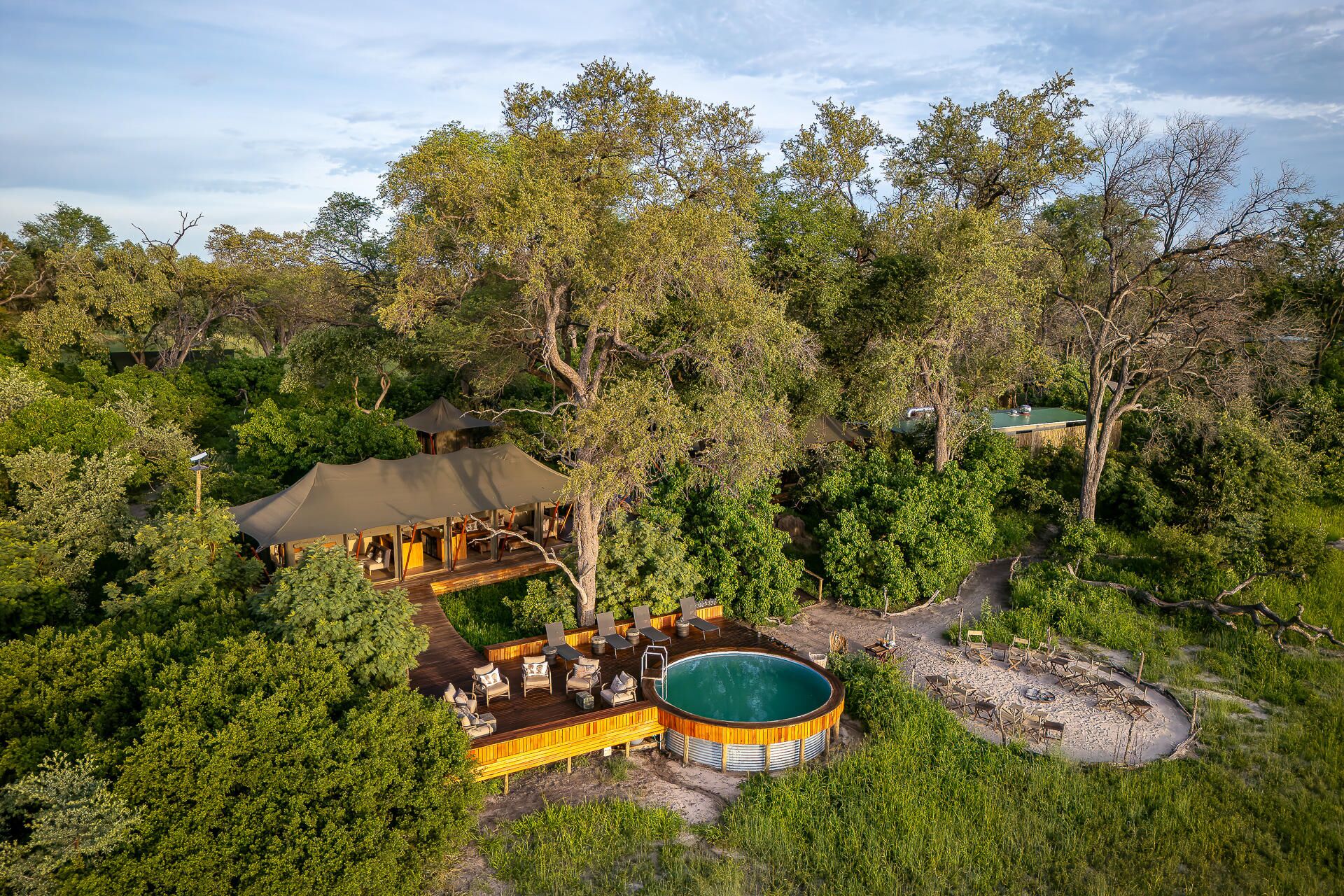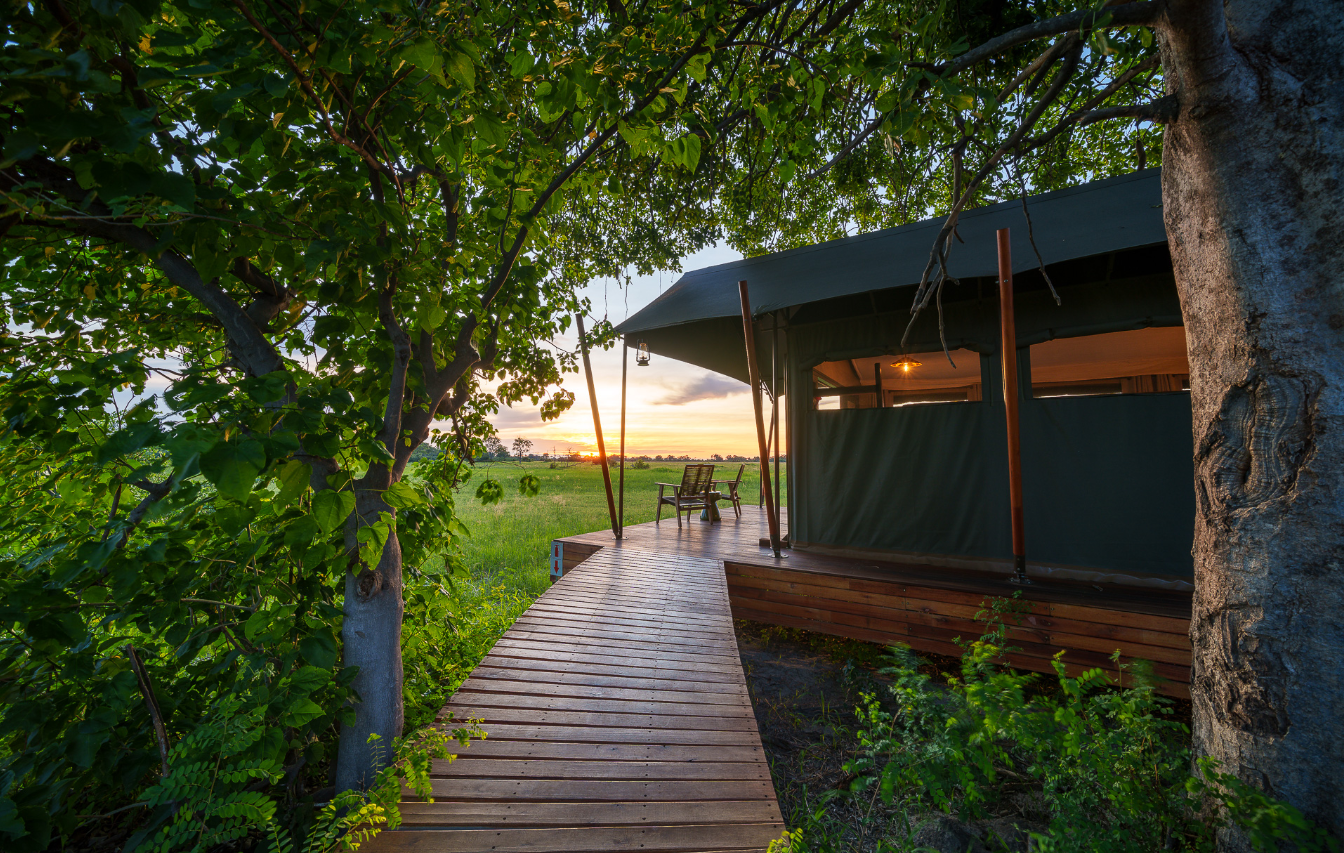 Mens teltene er placeret på lave trædæk (til de år med høj vandstand), er de sammenkoblede stier gennem campen alle på jorden og snor sig gennem croton- og mopanetræer, hvilket sikrer, at vores gæster føler sig forbundet med landskabet.