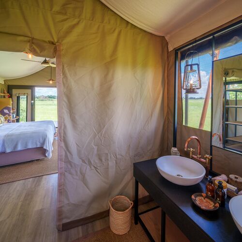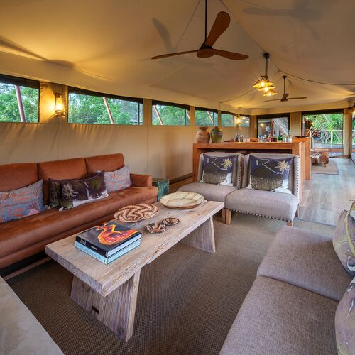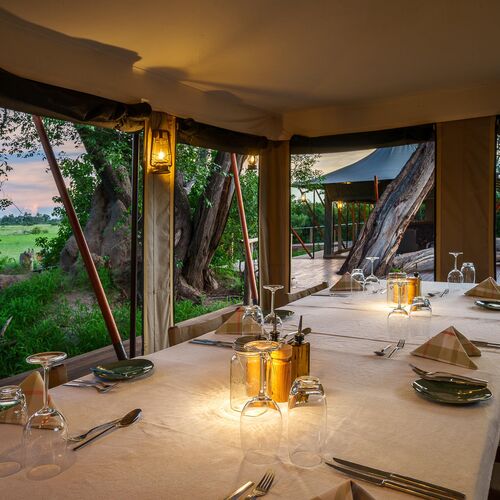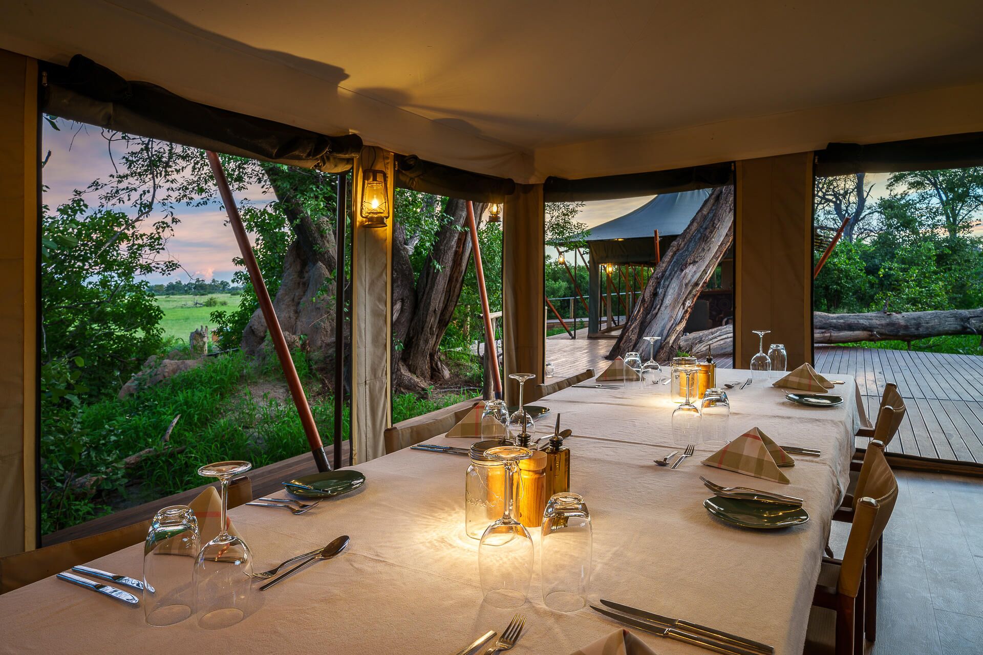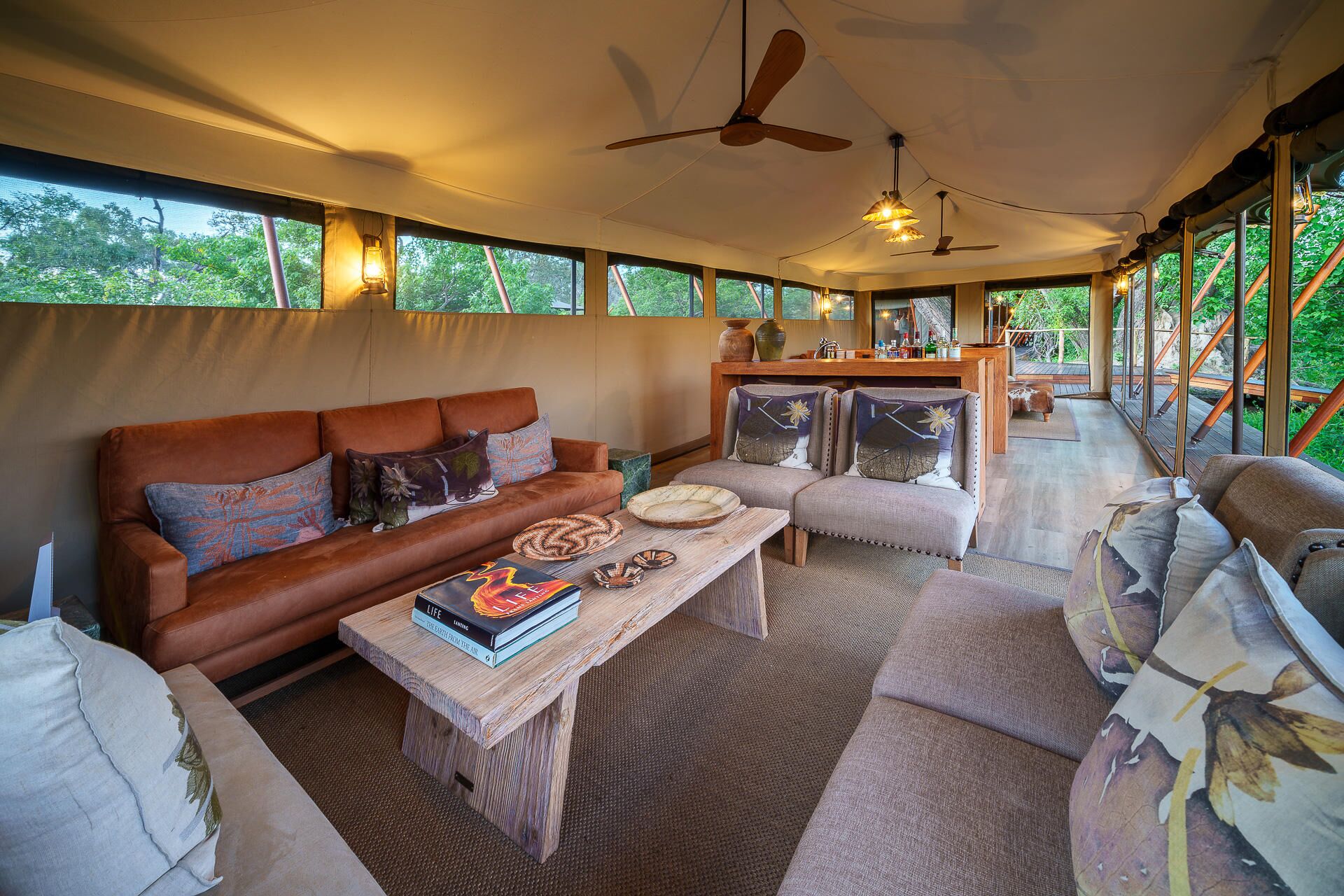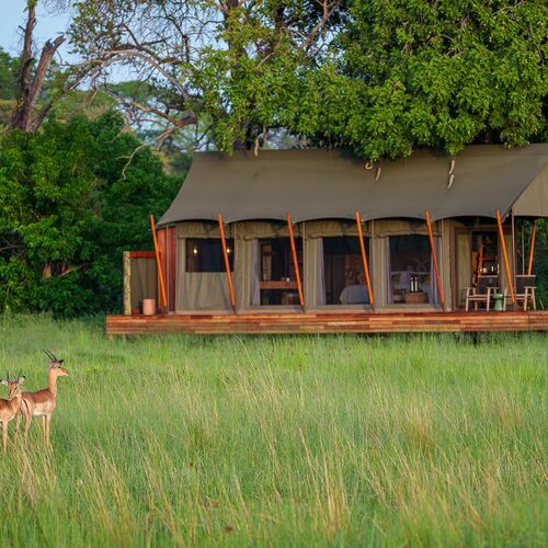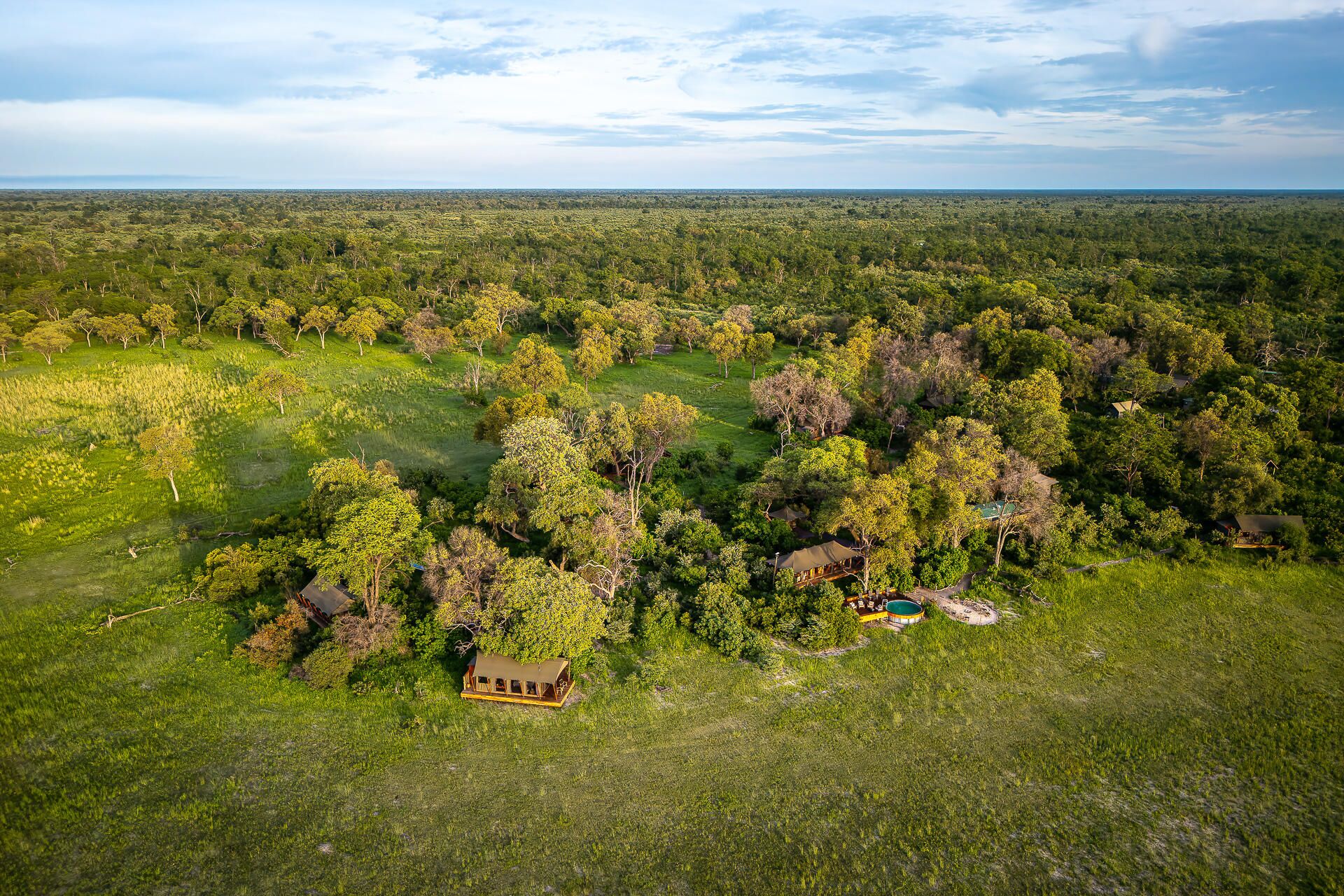 Mens teltene er placeret på lave trædæk (til de år med høj vandstand), er de sammenkoblede stier gennem campen alle på jorden og snor sig gennem croton- og mopanetræer, hvilket sikrer, at vores gæster føler sig forbundet med landskabet.