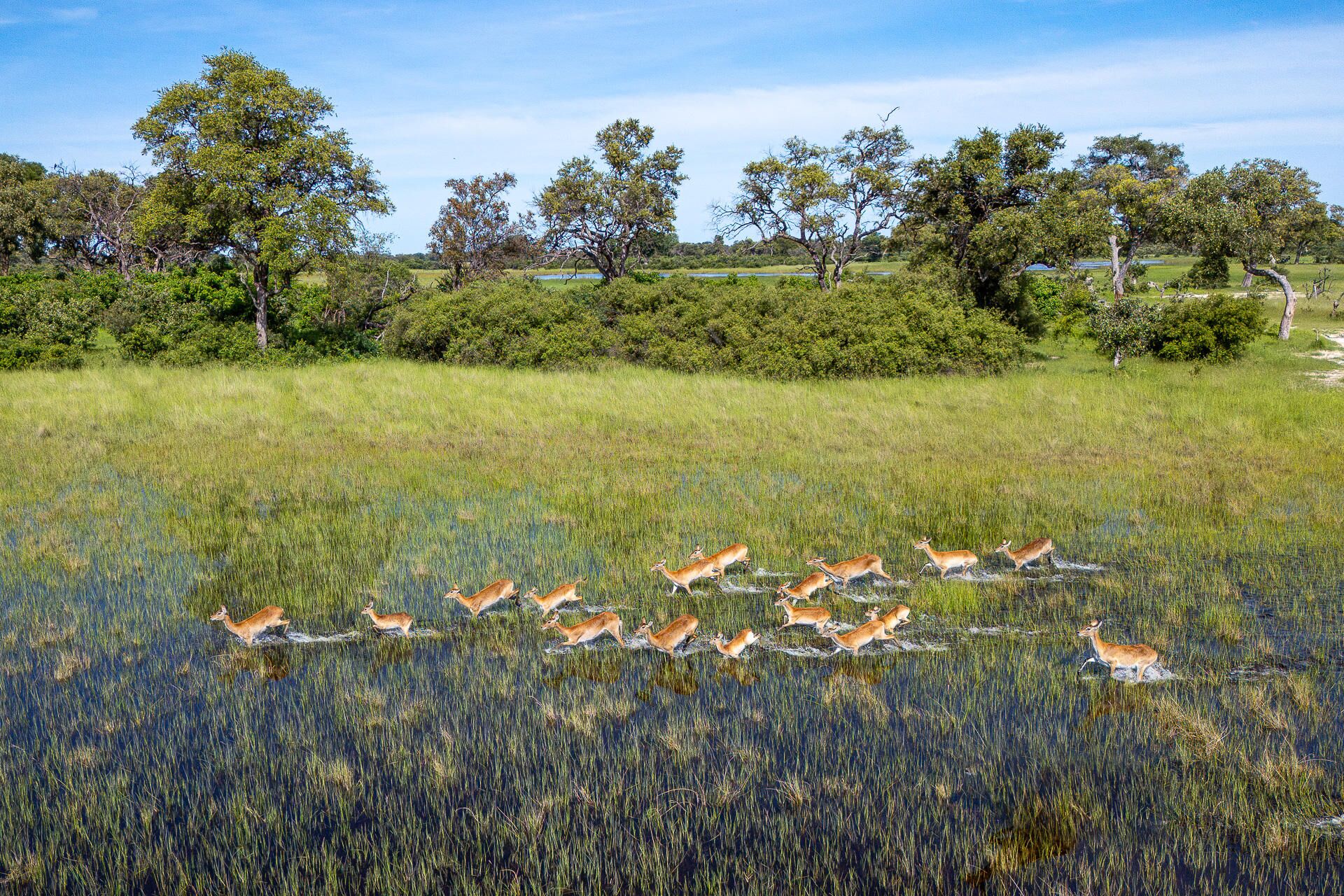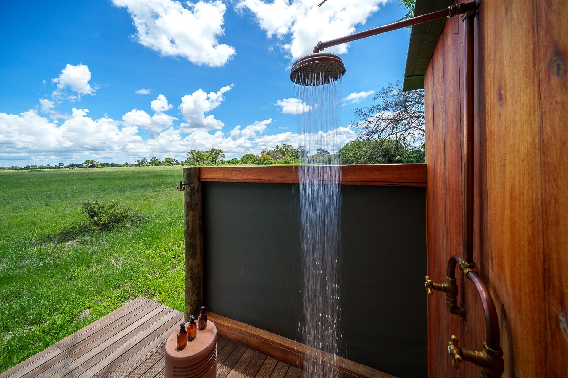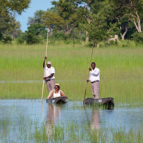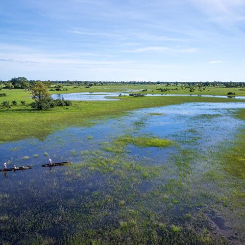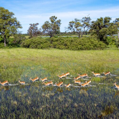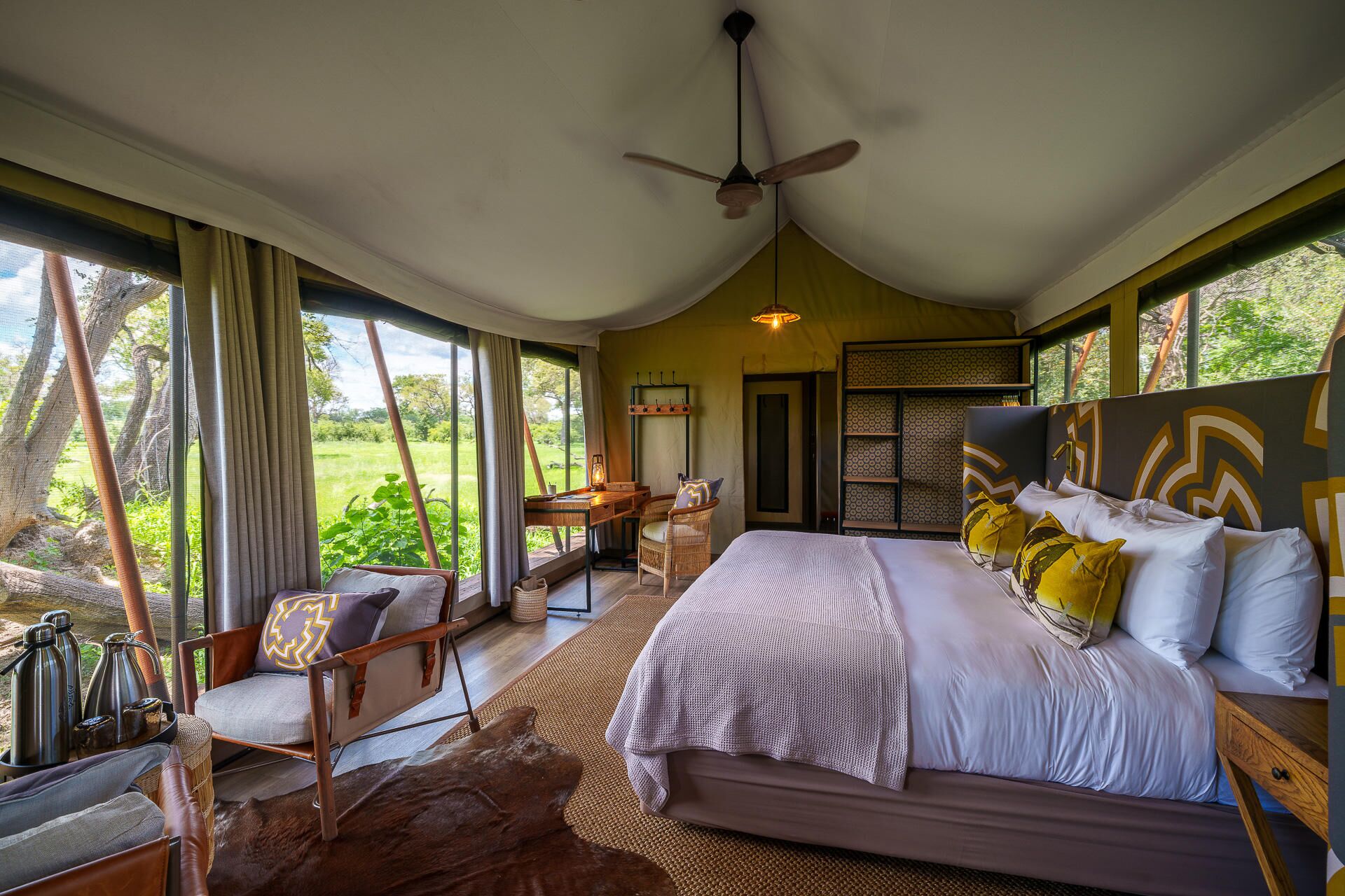 Mens teltene er placeret på lave trædæk (til de år med høj vandstand), er de sammenkoblede stier gennem campen alle på jorden og snor sig gennem croton- og mopanetræer, hvilket sikrer, at vores gæster føler sig forbundet med landskabet.