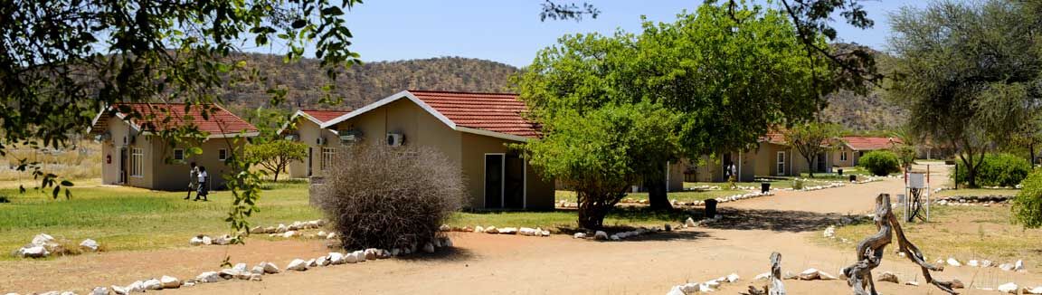 Khorixas tilbyder forskellige typer af indkvartering, herunder hytter, enkeltværelser og campingpladser for at imødekomme forskellige typer af rejsende.