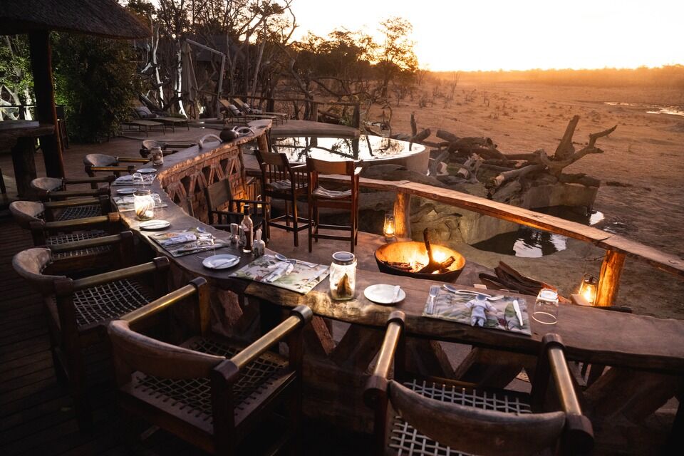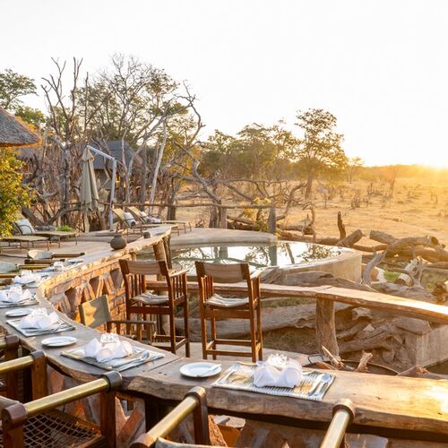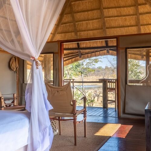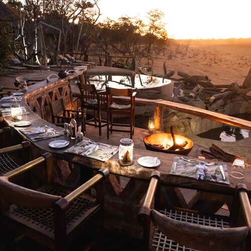 Lodgen ligger i hjärtat av den afrikanska bushen, och förutom rummen/tälten finns det en swimmingpool och ett fotografi-gömsle. Från de två eldstäderna finns utsikt över vattenhålet där många djur ofta samlas.