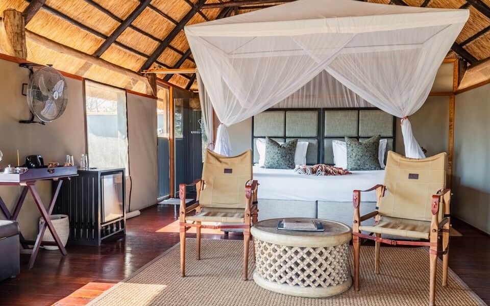 Lodgen består av 7 stråtäckta safari-stil kanvastält som är byggda på plattformar, samt 2 lyxiga honeymoon-sviter. Rummen är eleganta och moderna. Varje rum/tält har både inomhus- och utomhusdusch, en balkong där man kan sitta och titta på djur, samt te- och kaffefaciliteter och en minibar. Lyxsviterna har dessutom utomhusbadkar. Sängarna är enkelsängar men kan alla konverteras till king-size dubbelsängar. Inga barn under 12 år är tillåtna här, om inte lodgen bokas exklusivt.