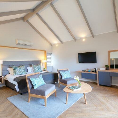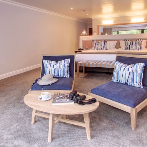 Knysna Hollow har hele 44 rummelige og morderne suiter. Disse er udstyret med aircondition, satellit-tv, Nespresso-stationer, te, elkedel, værdiboks, mini-bar køleskabe efter anmodning, hårtørrer, telefon og egen terrasse med udendørs siddepladser med udsigt over haven og de to swimmingpools.