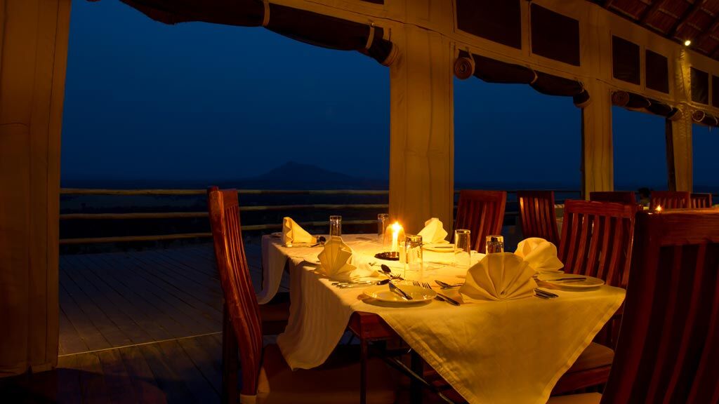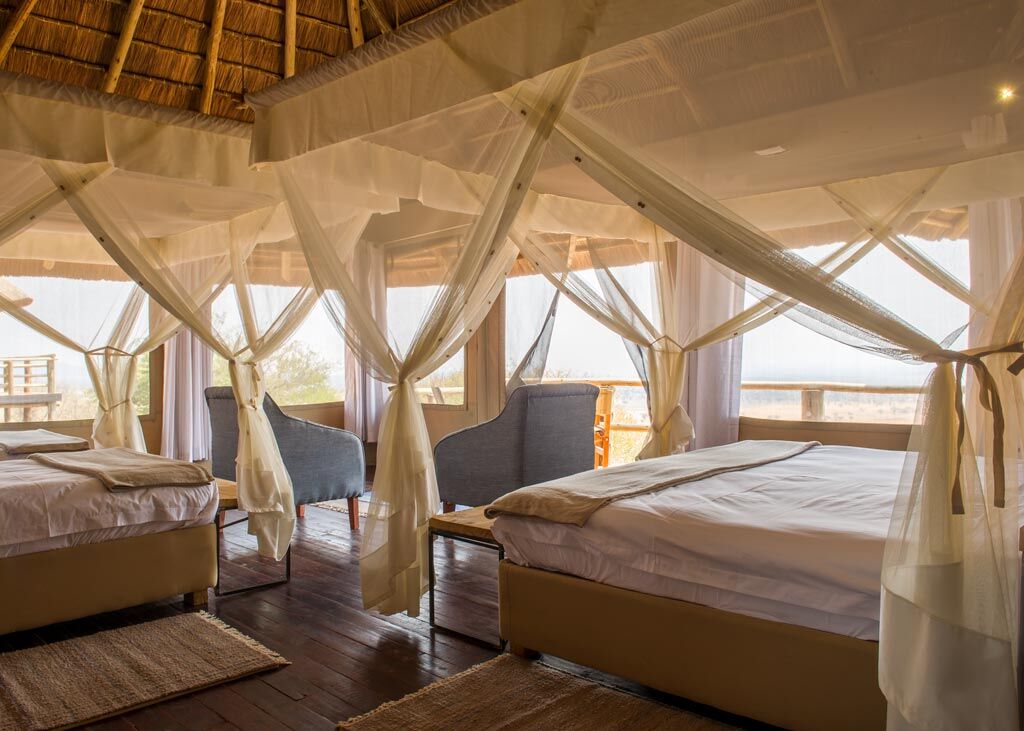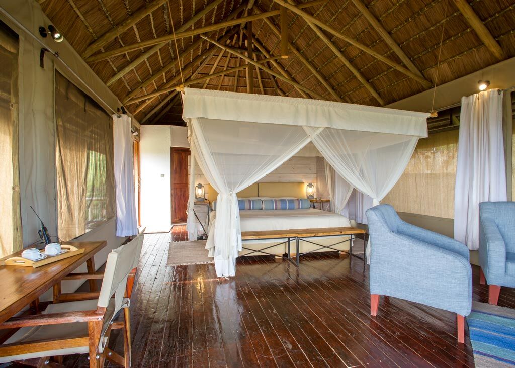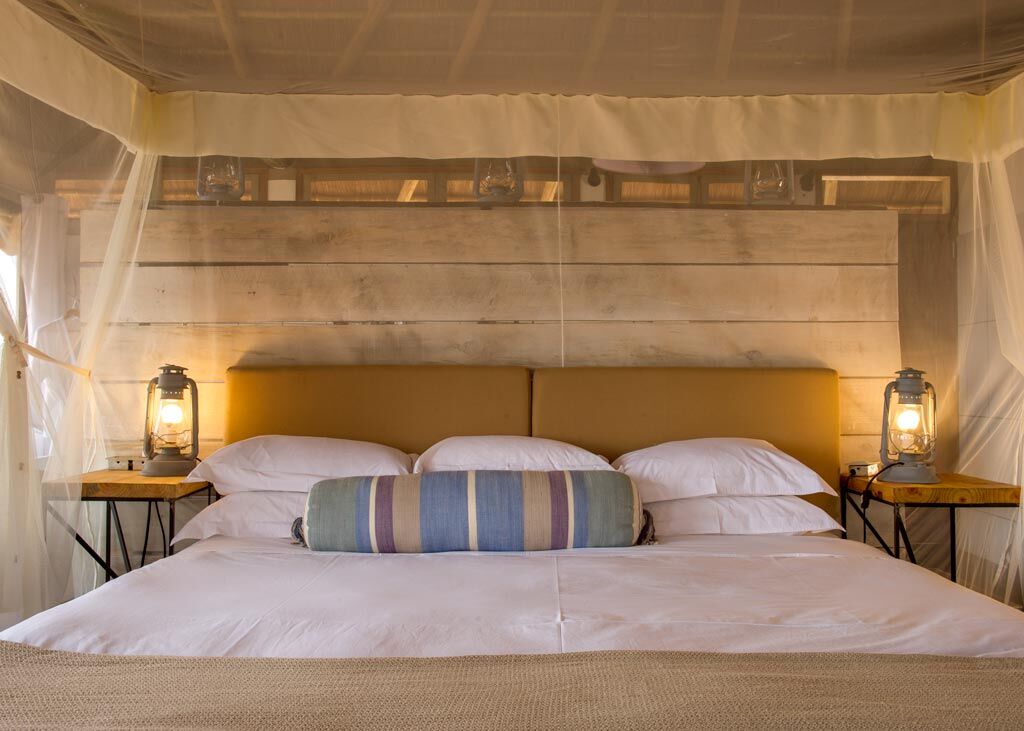 Overnatningsmulighederne omfatter elegante telte med eget badeværelse og udendørs bruser, hvor gæsterne kan nyde en forfriskende bruser under stjernerne. Hvert telt har sin egen private terrasse, hvorfra man kan nyde landskabet og omgivelserne. Hvert telt er også udstyret med moderne bekvemmeligheder, herunder myggenet, mineralvand, intern telefon, samt te- og kaffefaciliteter. En ventilator sørger for behagelig temperatur i teltet.