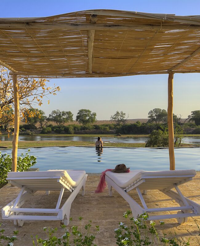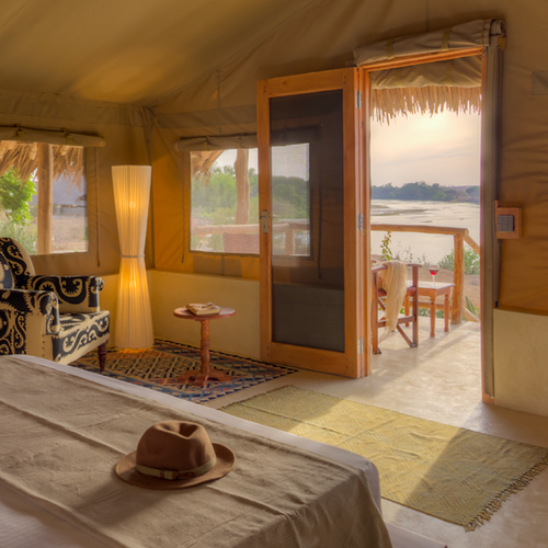 Campen har moderne faciliteter, herunder et infinity-pool med udsigt over floden og en udendørs restaurant, der serverer lækre middage under stjernerne. Gæsterne kan vælge mellem luksuriøse suiter eller familieværelser med privat terrasse og betagende udsigt. For dem der søger eventyr, er der mulighed for game drives og safariture i den omkringliggende natur.