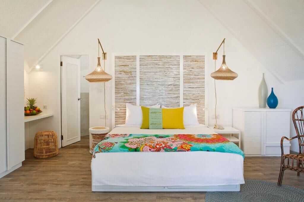 Med livlige farver og lokale kunstværker, fiskerbådsinspirerede stråtag og skrå lofter er indkvartering på La Pirogue fuld af traditionel mauritisk charme.