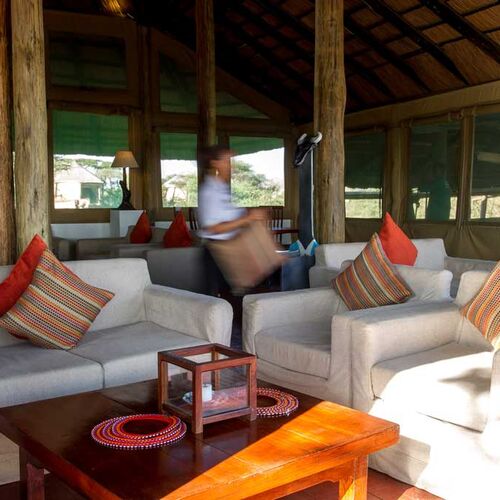 Indkvartering: Elegante telte er bygget på forhøjede træplatforme med eget badeværelse og en udendørs bruser. Efter en dag på safari kan gæsterne nyde en forfriskende bruser under stjernerne. Hvert telt har sin egen private terrasse, hvor gæsterne kan nyde landskabet og omgivelserne. Familieteltet består af to sammenkoblede telte med et fælles badeværelse og privat veranda.